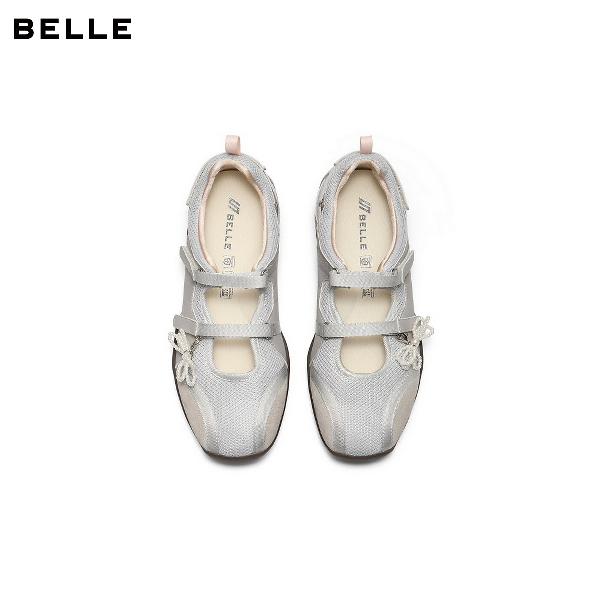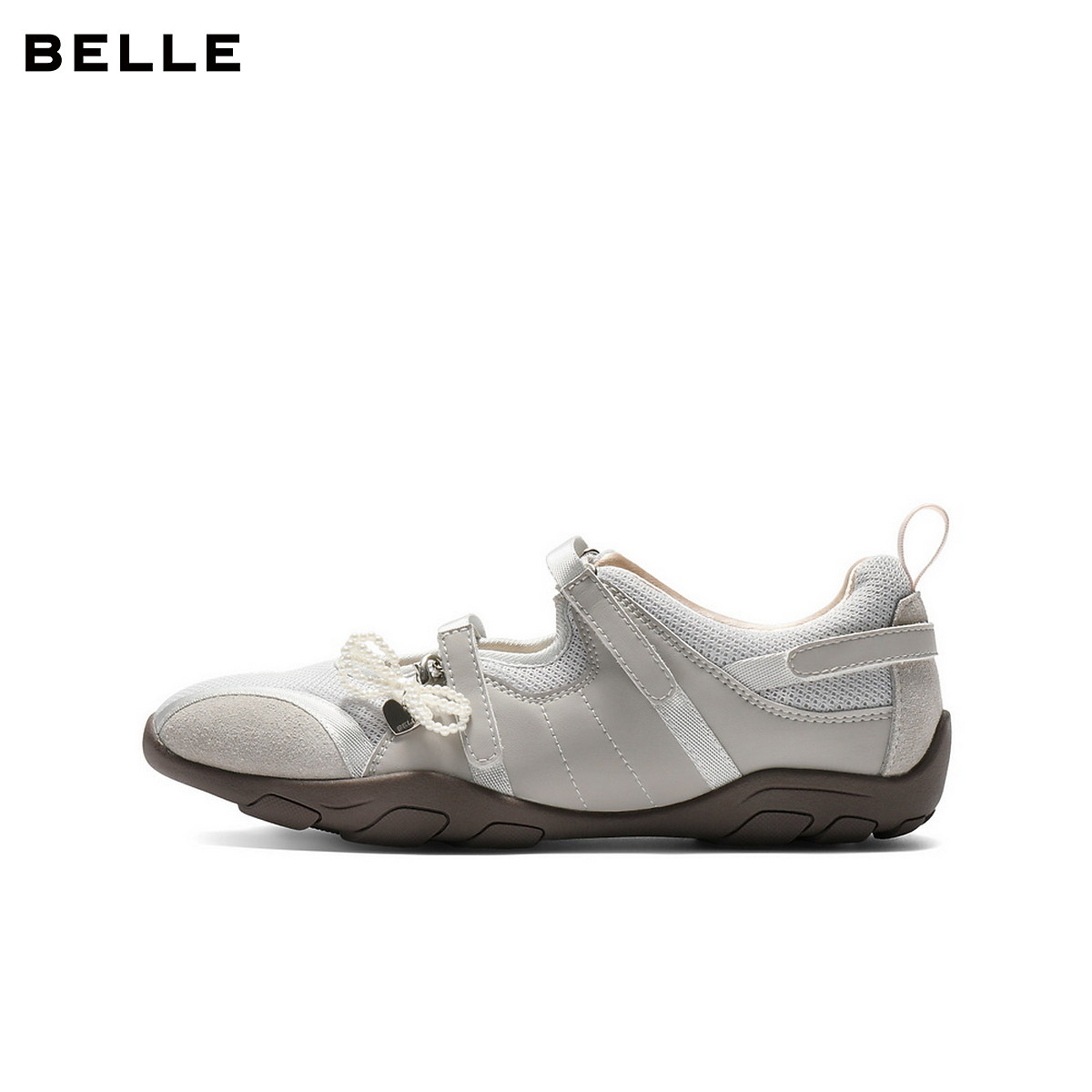 子E7A1DCQ5 魔术贴薄底休闲德训鞋 百丽芭蕾风玛丽珍鞋 女春夏新款