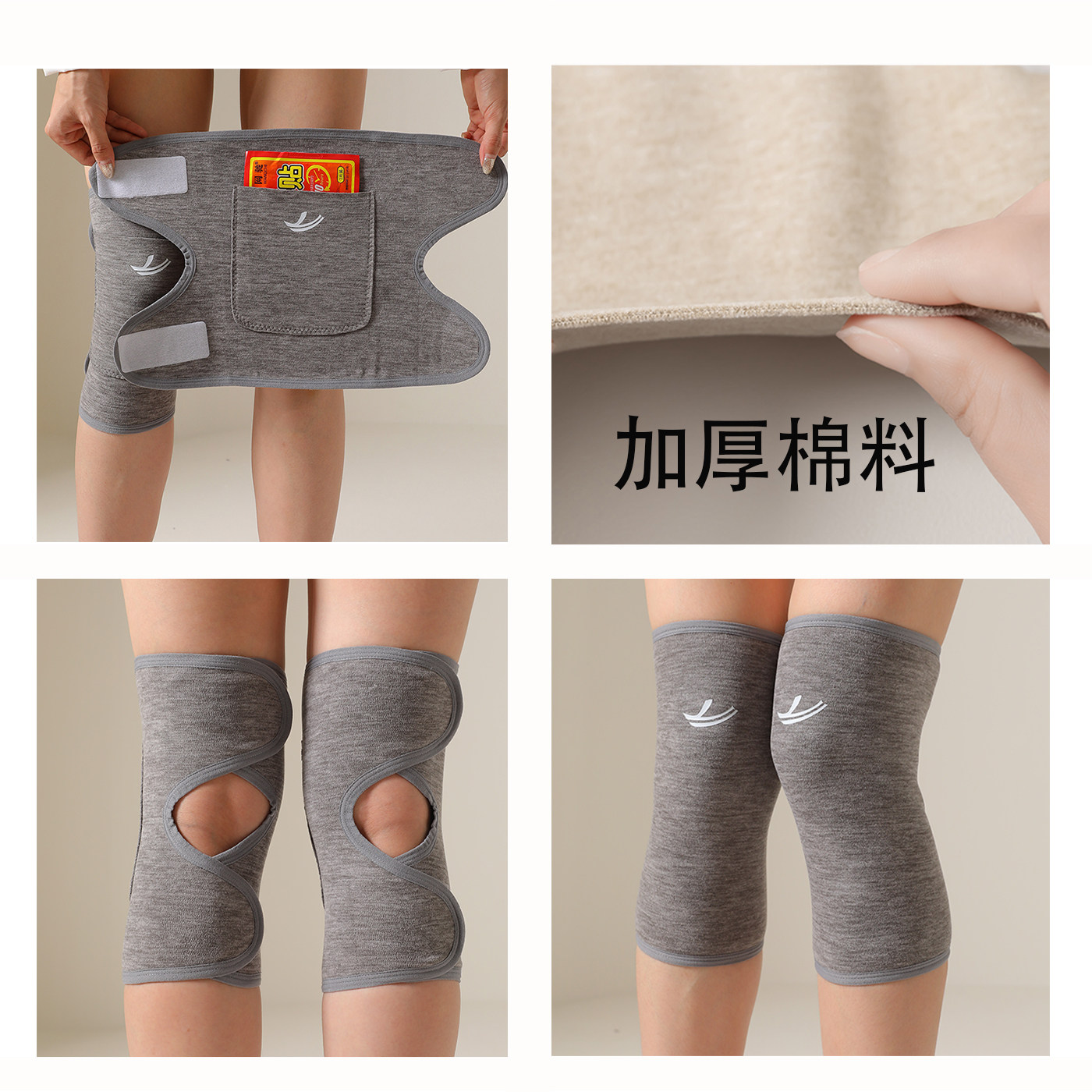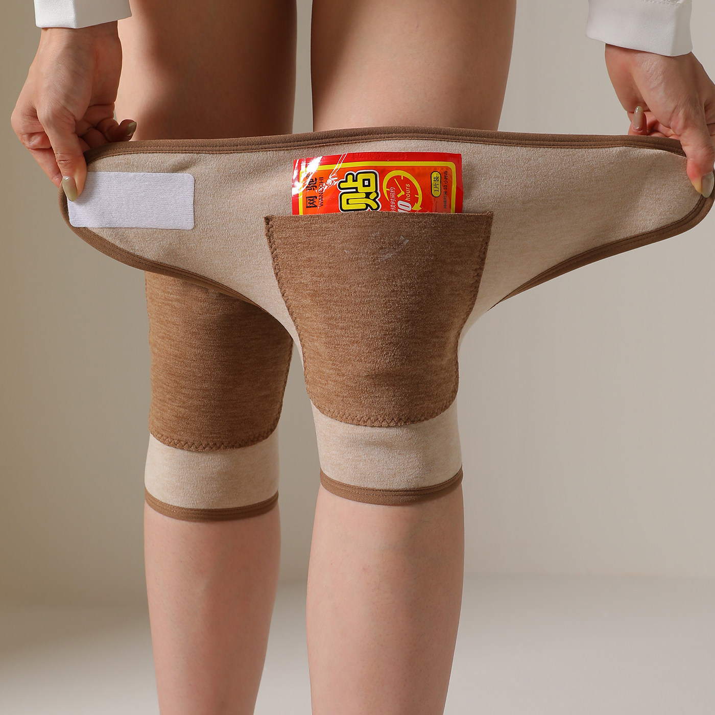 粘扣带兜护膝盖秋冬季 防寒老人老寒腿保暖加兜暖贴发热膝关节护套