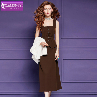 复古荷叶边收腰无袖 女秋季 上衣包臀裙子 套装 菲梦伊高品质名媛时尚