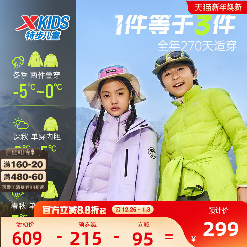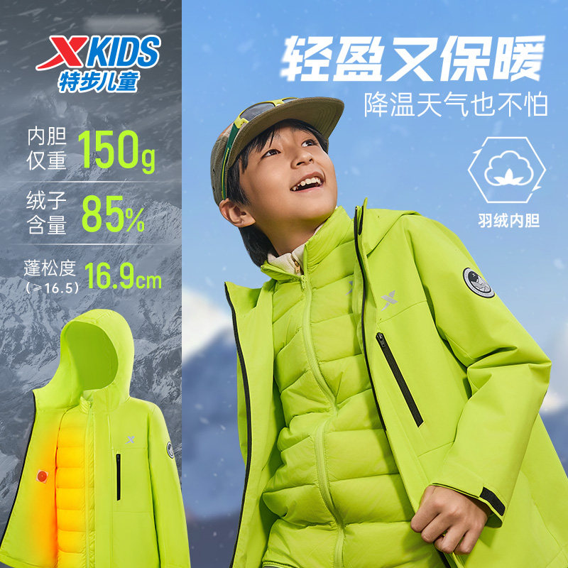 小暖壳2.0特步童装 羽绒服三防男童保暖上衣 儿童三合一外套男冬季