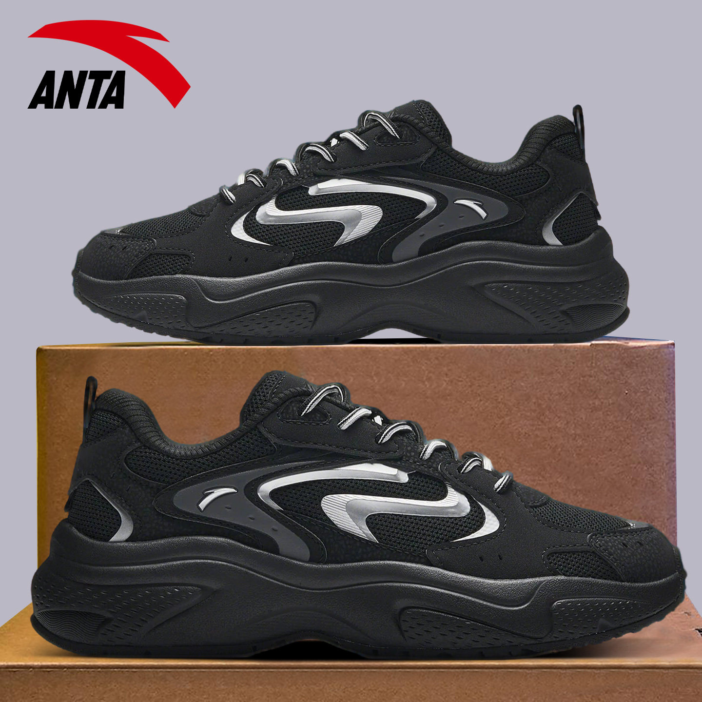 冬季 皮面加绒男士 休闲鞋 安踏男鞋 子老爹鞋 男款 黑色鞋 黑武士运动鞋