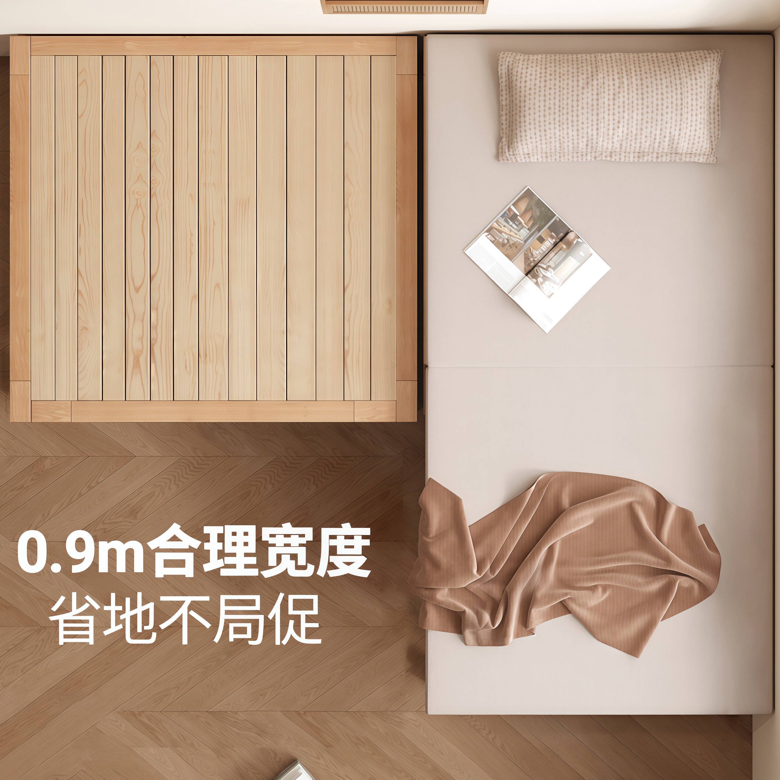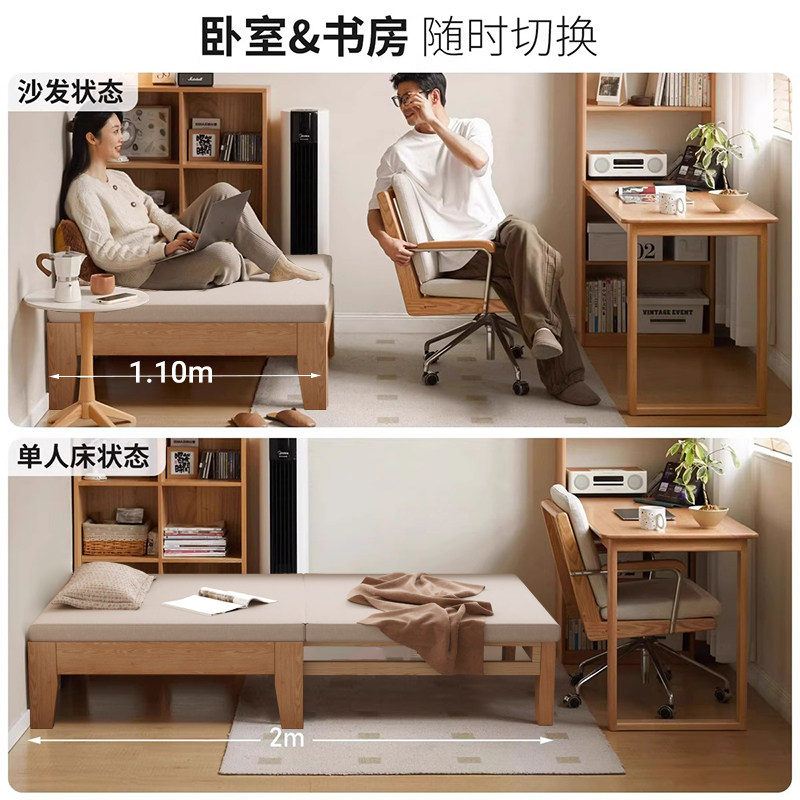 红橡木实木床折叠沙发床伸缩两用客厅小户型家用卧室简易抽拉床