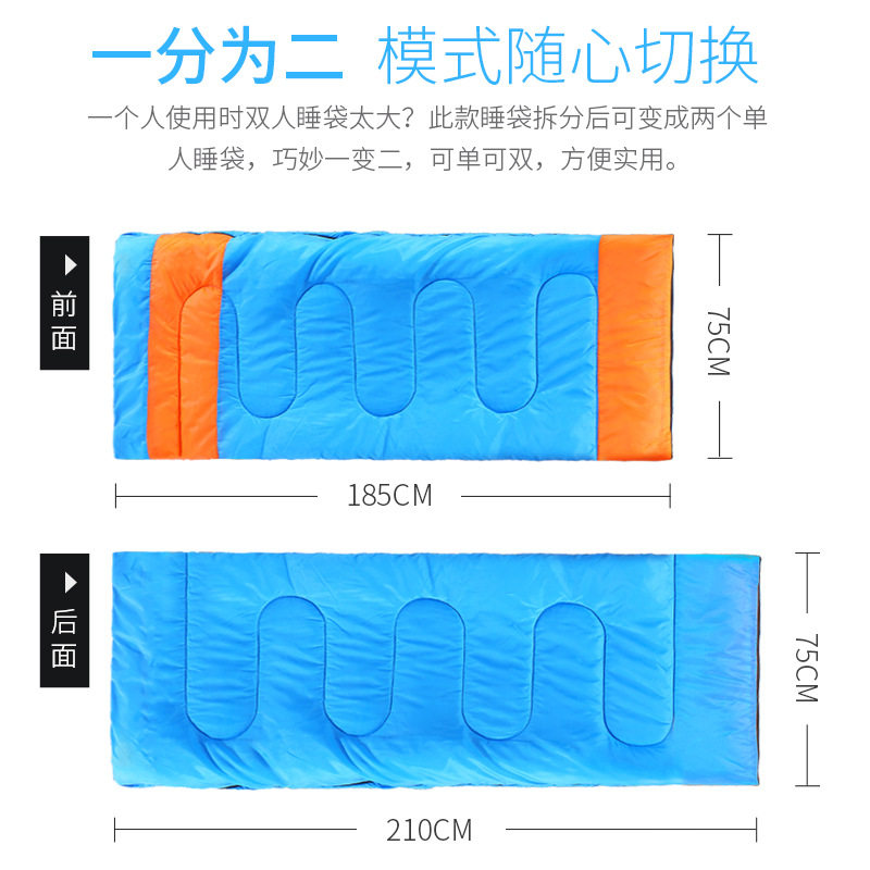 双人情侣睡袋2600g黎程三合一可拆中空棉睡袋信封式 野营睡袋