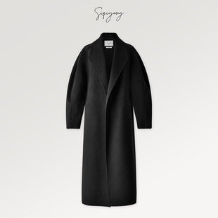 SIQIYOUNG 手工大衣立裁收腰气场 小于14微米小山羊绒大翻领羊腿袖