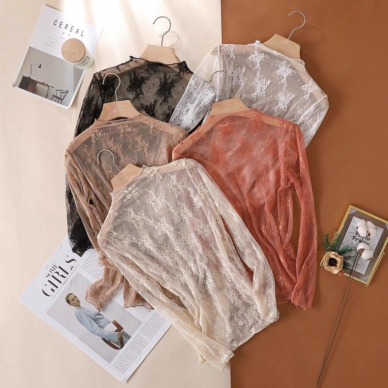 网纱上衣性感内搭小衫 女春洋气镂空长袖 高档蕾丝打底衫 2025秋新款
