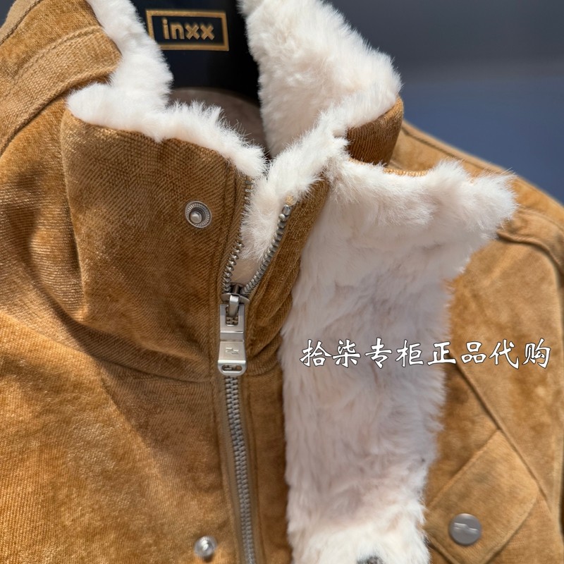 黑色休闲百搭连帽夹克上衣 胖mm双面穿毛绒棉服外套女冬季 大码 女装
