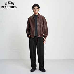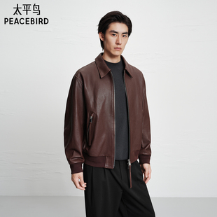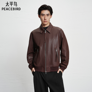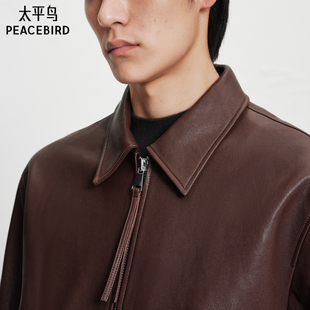 翻领阔版 夹克复古质感机车阔版 夹克 真皮皮衣冬季 太平鸟男装