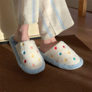 女轻便防滑网红秋冬居家包头毛毛鞋 细细条 多巴胺彩色波点棉拖鞋