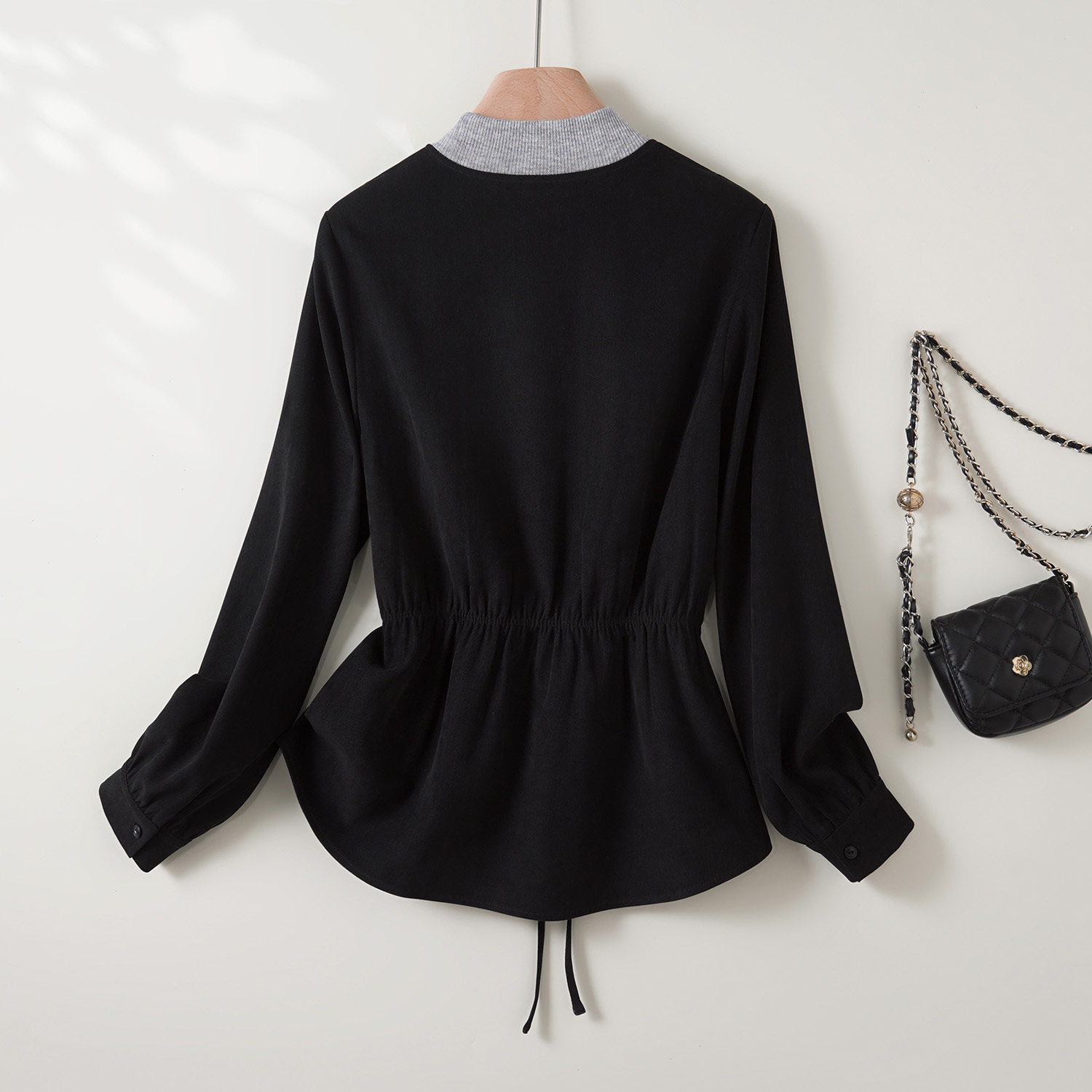 亦白 百搭收腰撞色拼接假两件针织毛衫 25冬季 时尚 上衣女 新款 YBAI