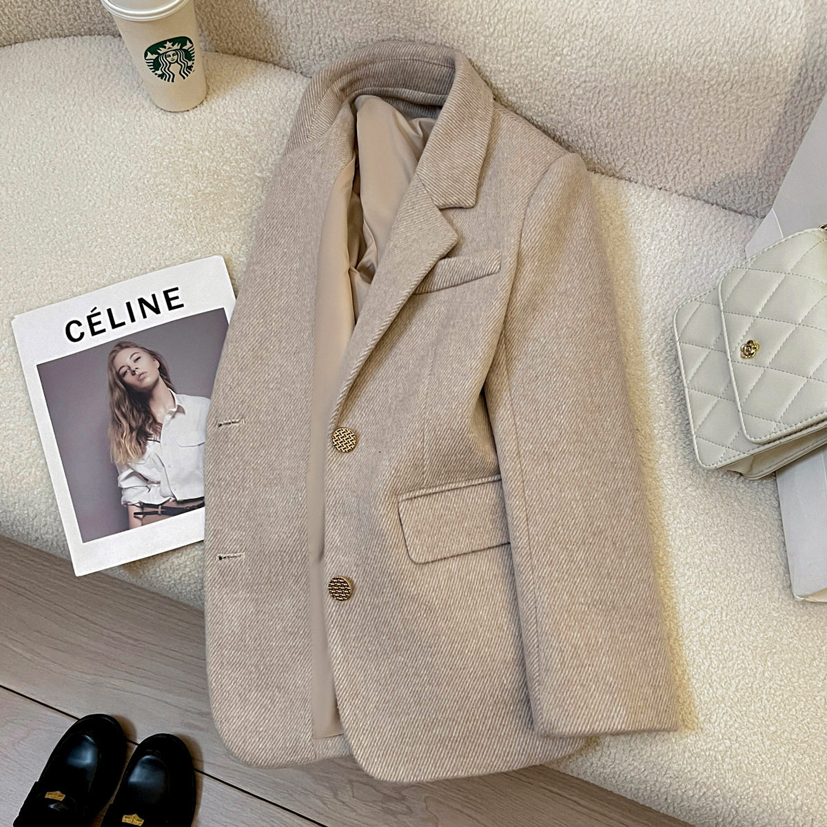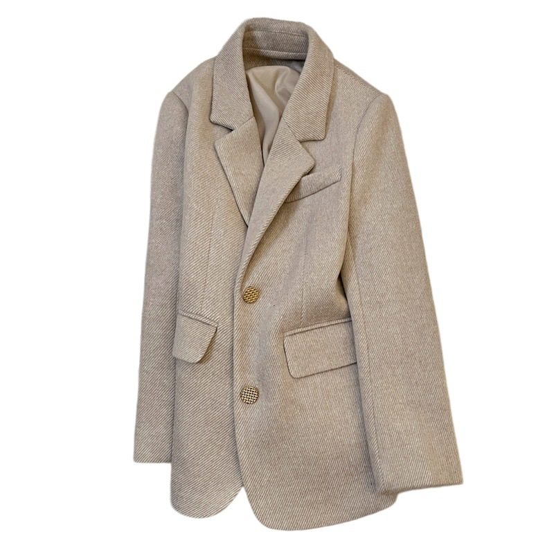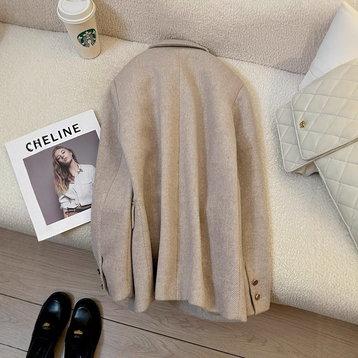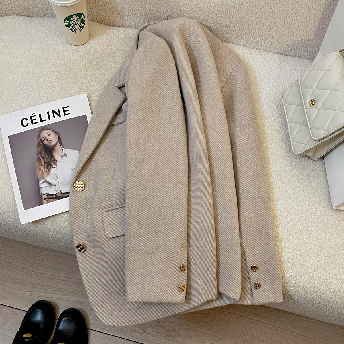 今年流行特惠米灰色毛呢西装 高级感复古英伦 外套女2025秋冬新款