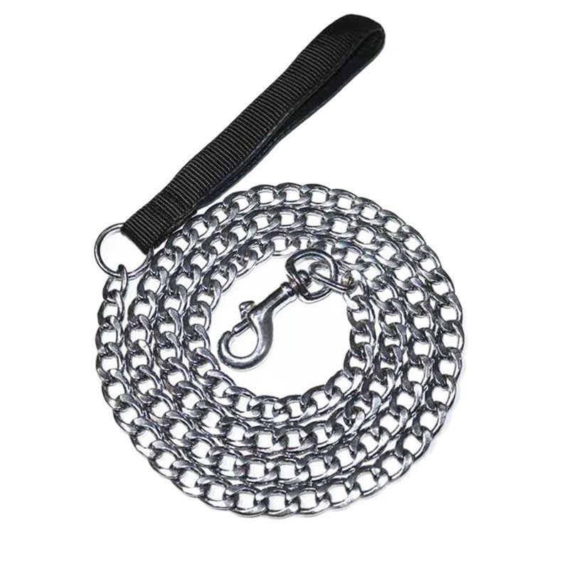 防咬狗牵引 铁链子狗绳加w泡棉防勒手小中大型犬链条金属狗链子