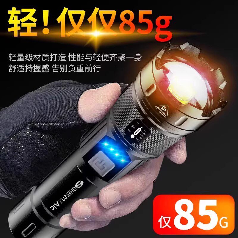 公牛适用手电筒强光充电LED变焦长续航超亮远射户外便携家用激光