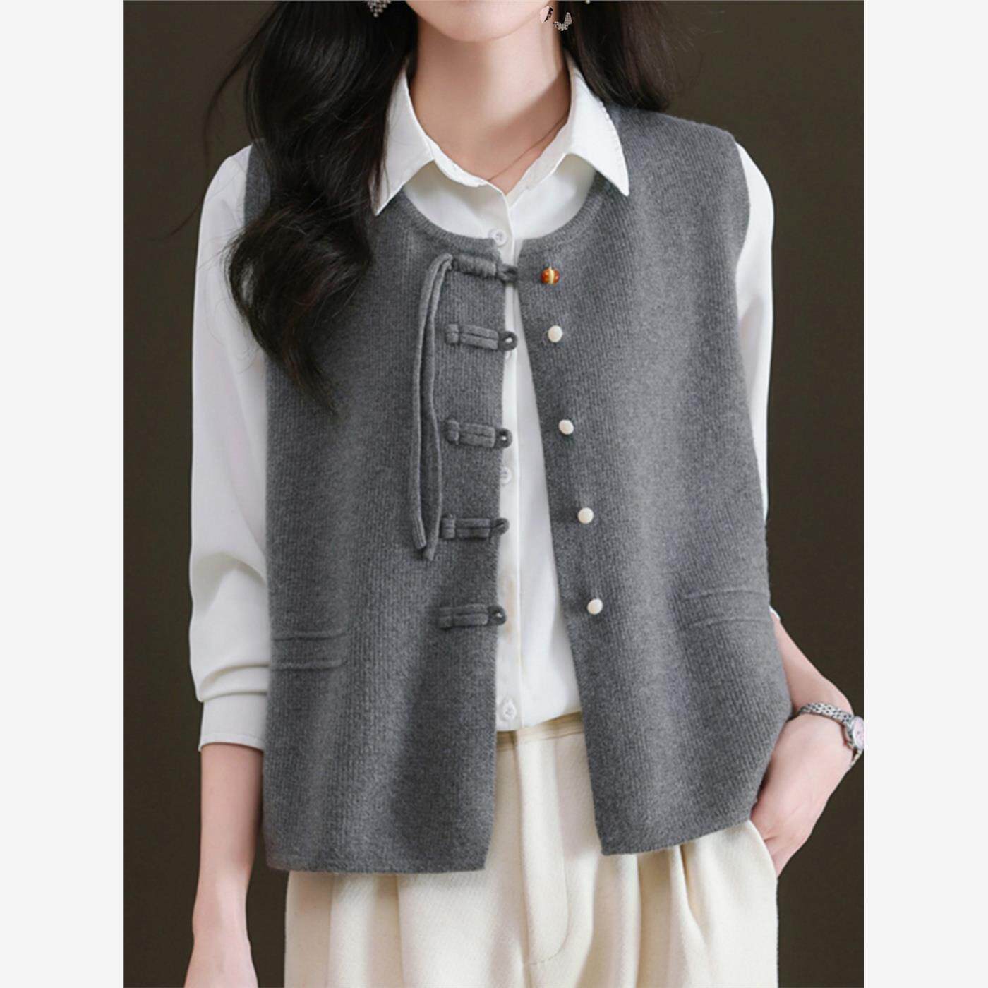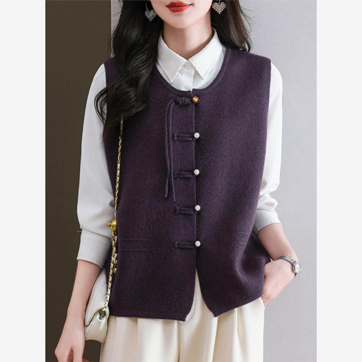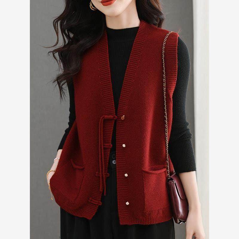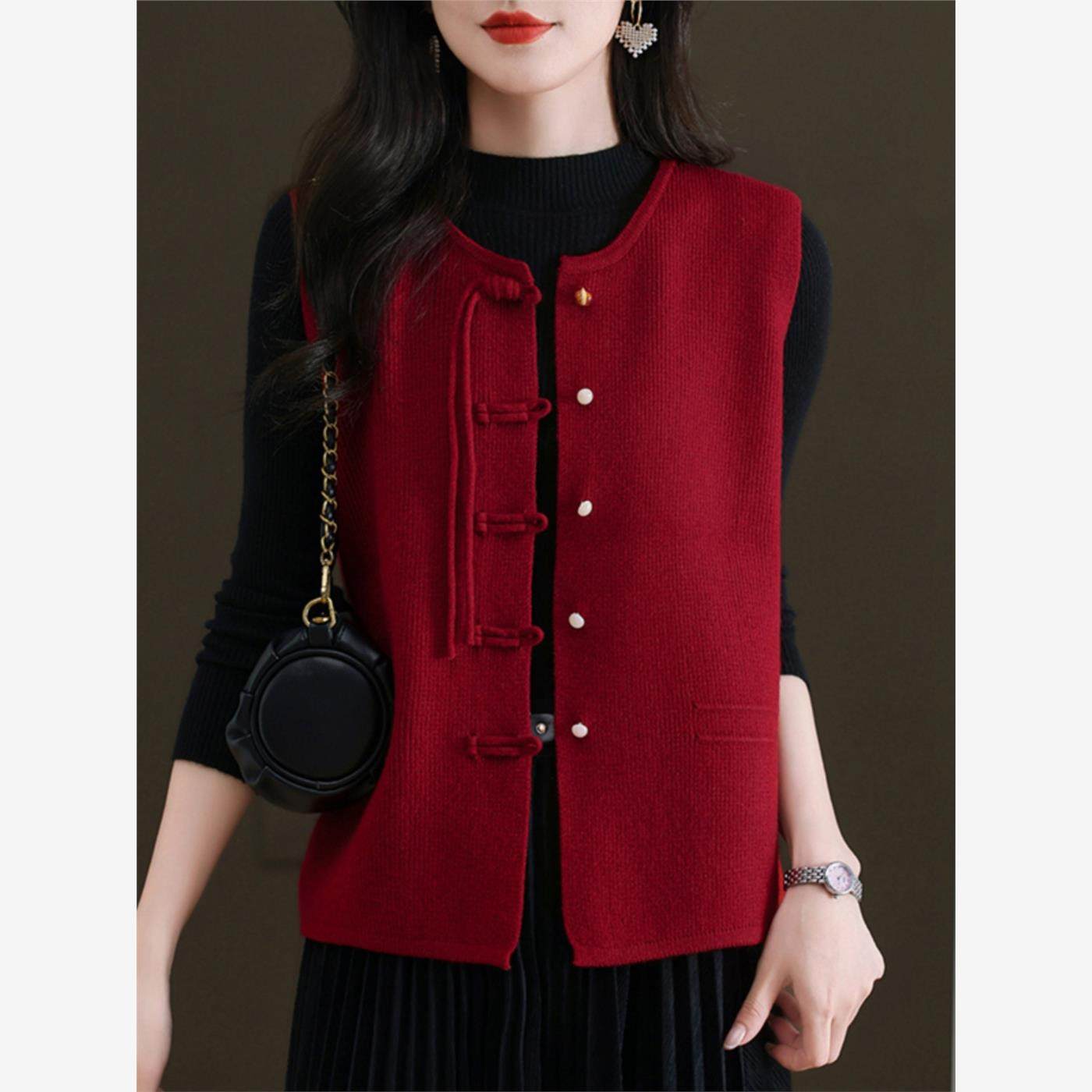 红色上衣 中老年秋冬无袖 毛衣女中国风民族风格 本命年针织背心开衫