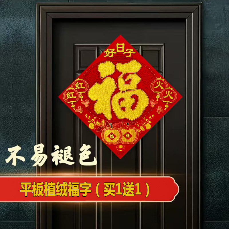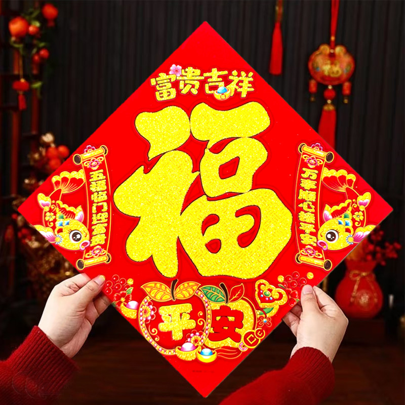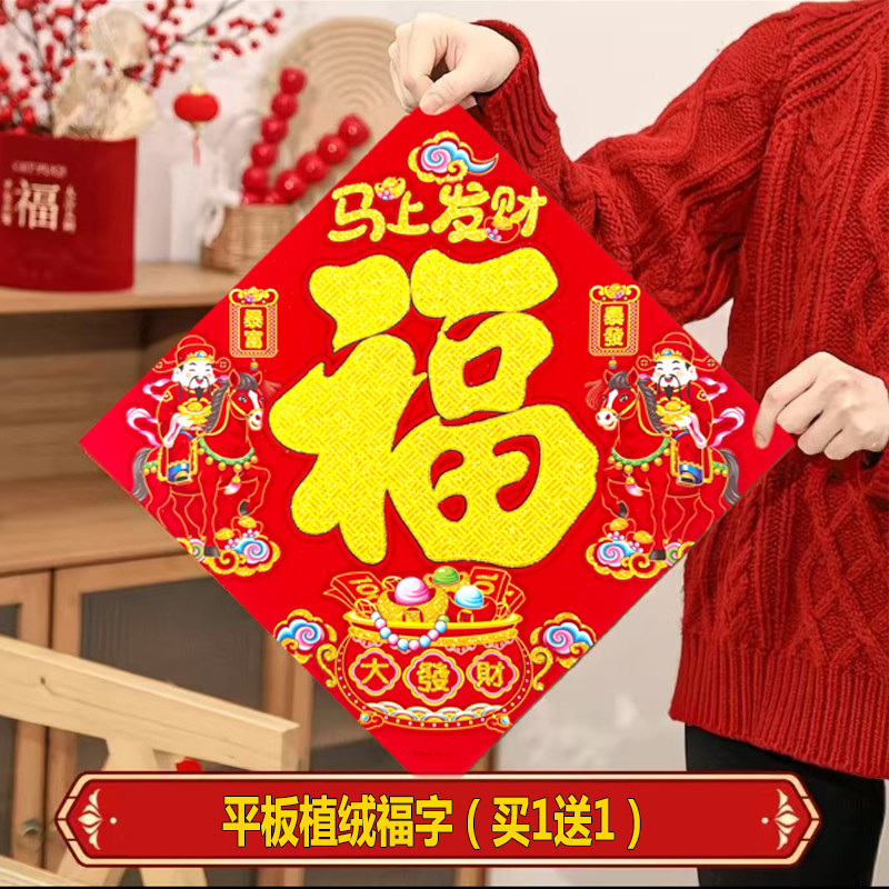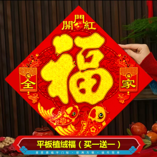 2026新款 平板春节贴纸结婚踩福字新年植绒纸门贴烫金过年入户大门