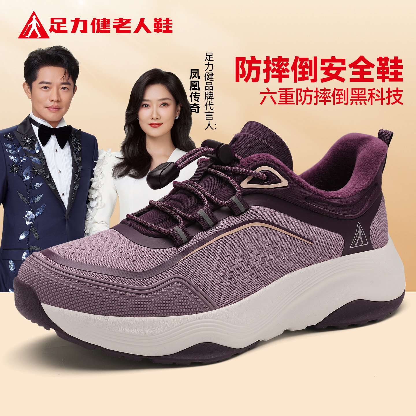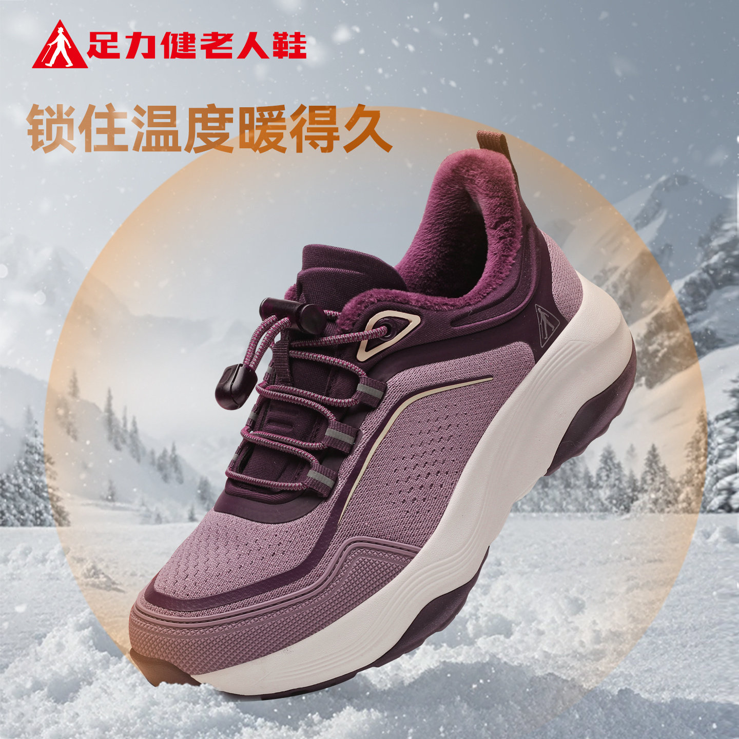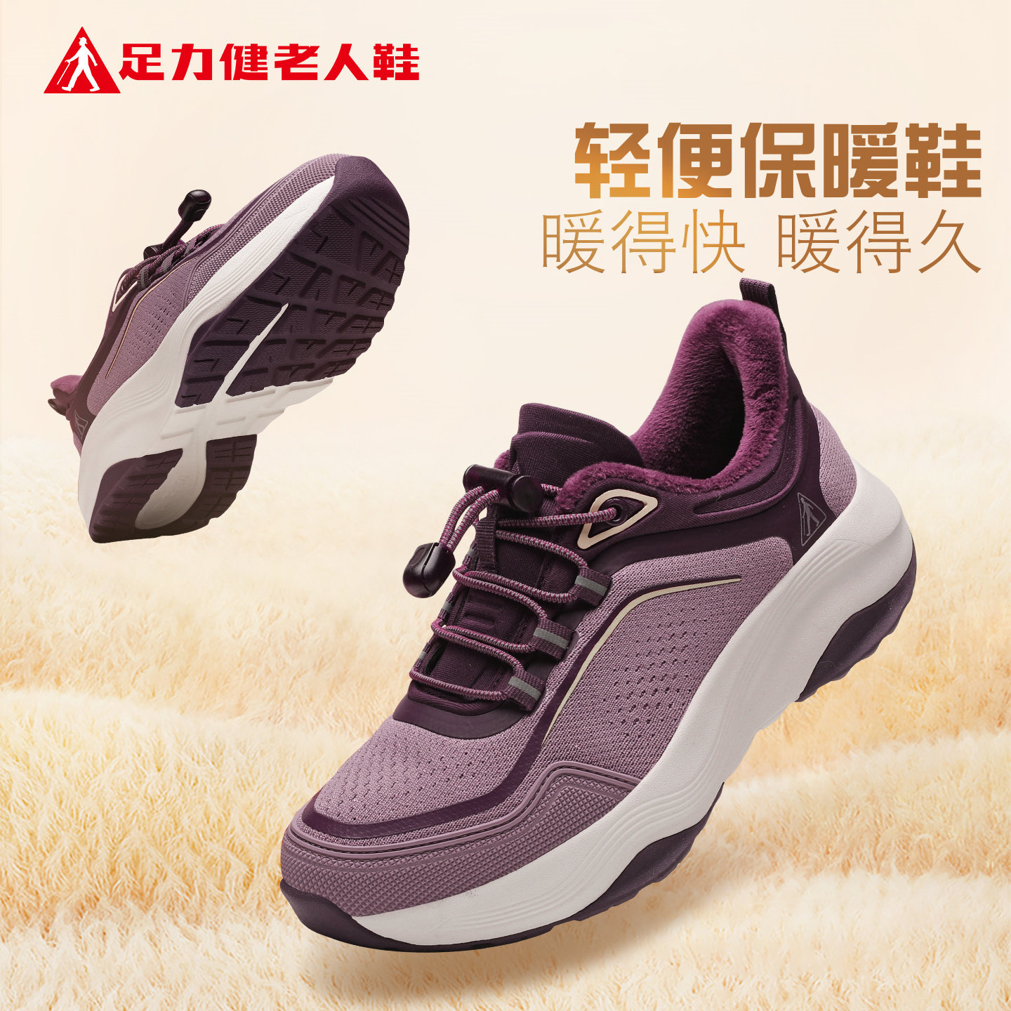 加绒保暖健步休闲女鞋 中老年妈妈冬季 官方旗舰店正品 足力健老人鞋