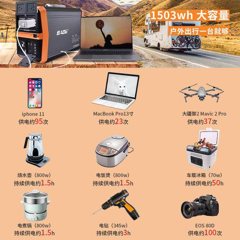 110V 户外移动蓄电池大功率1500W露营太阳能电源应急自驾游备电源
