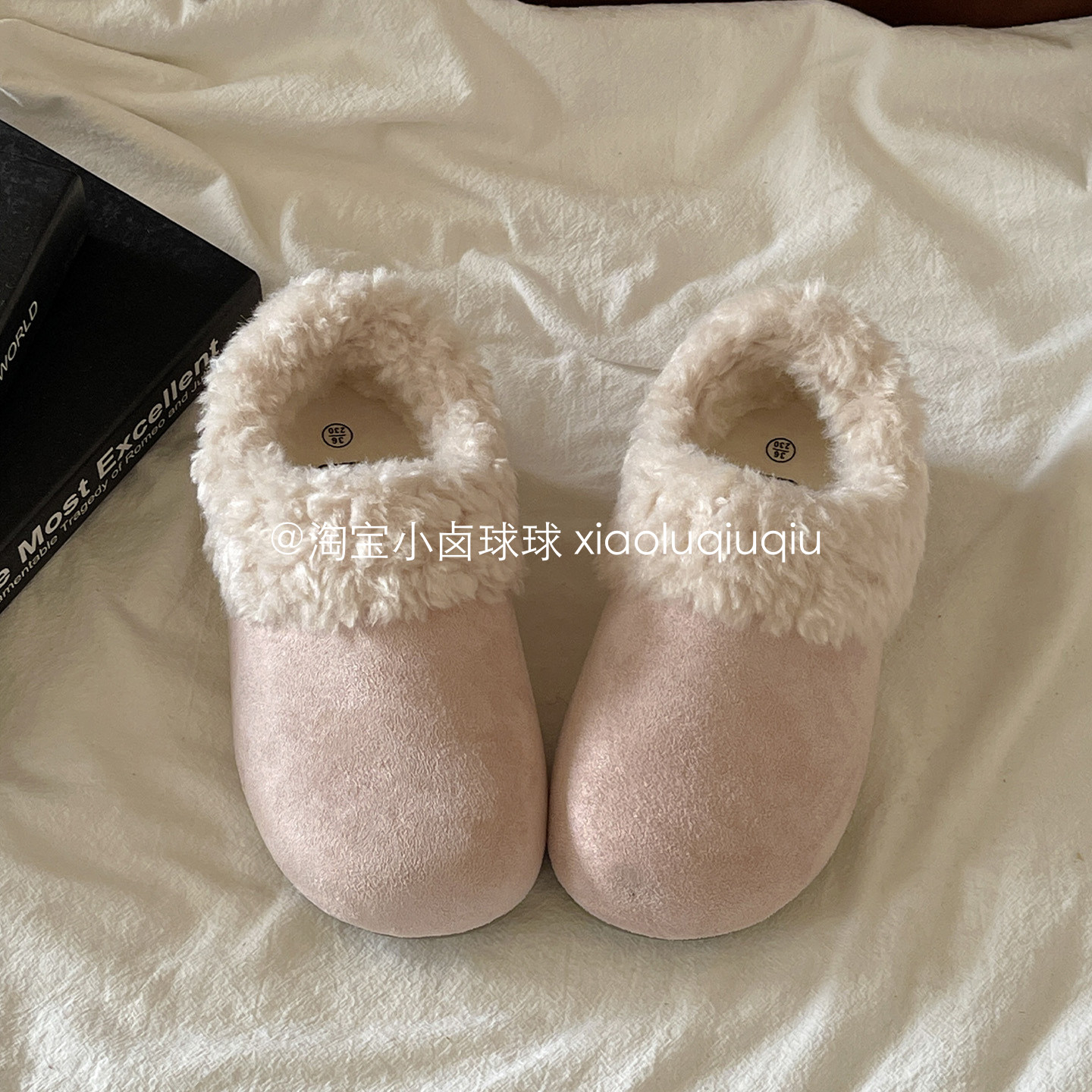 2025新款 加绒二棉鞋 爆款 板鞋 小卤球球厚底勃肯鞋 保暖毛毛鞋 冬季