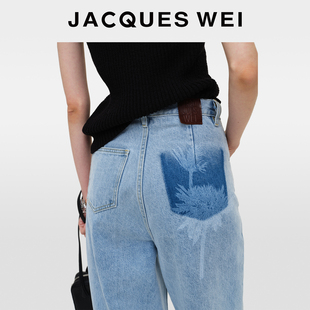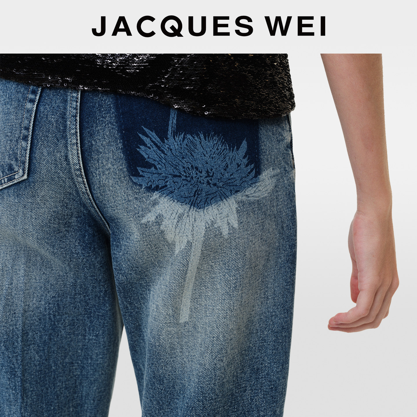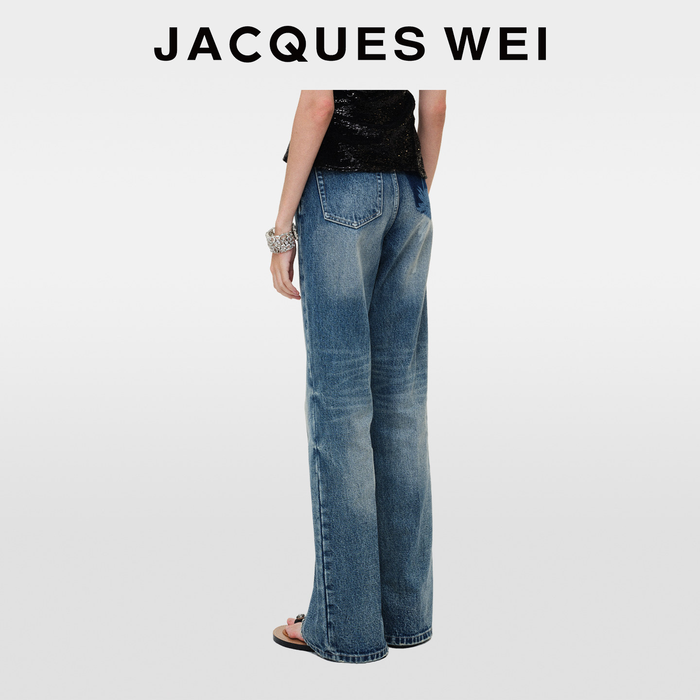 脚分岔牛仔裤 JACQUES 秋冬水洗做旧激光刺芹直筒裤 2025新款 女 WEI