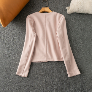 休闲 时尚 活力减龄 圆领长袖 外套 春秋外贸韩版 单排扣开衫 新款