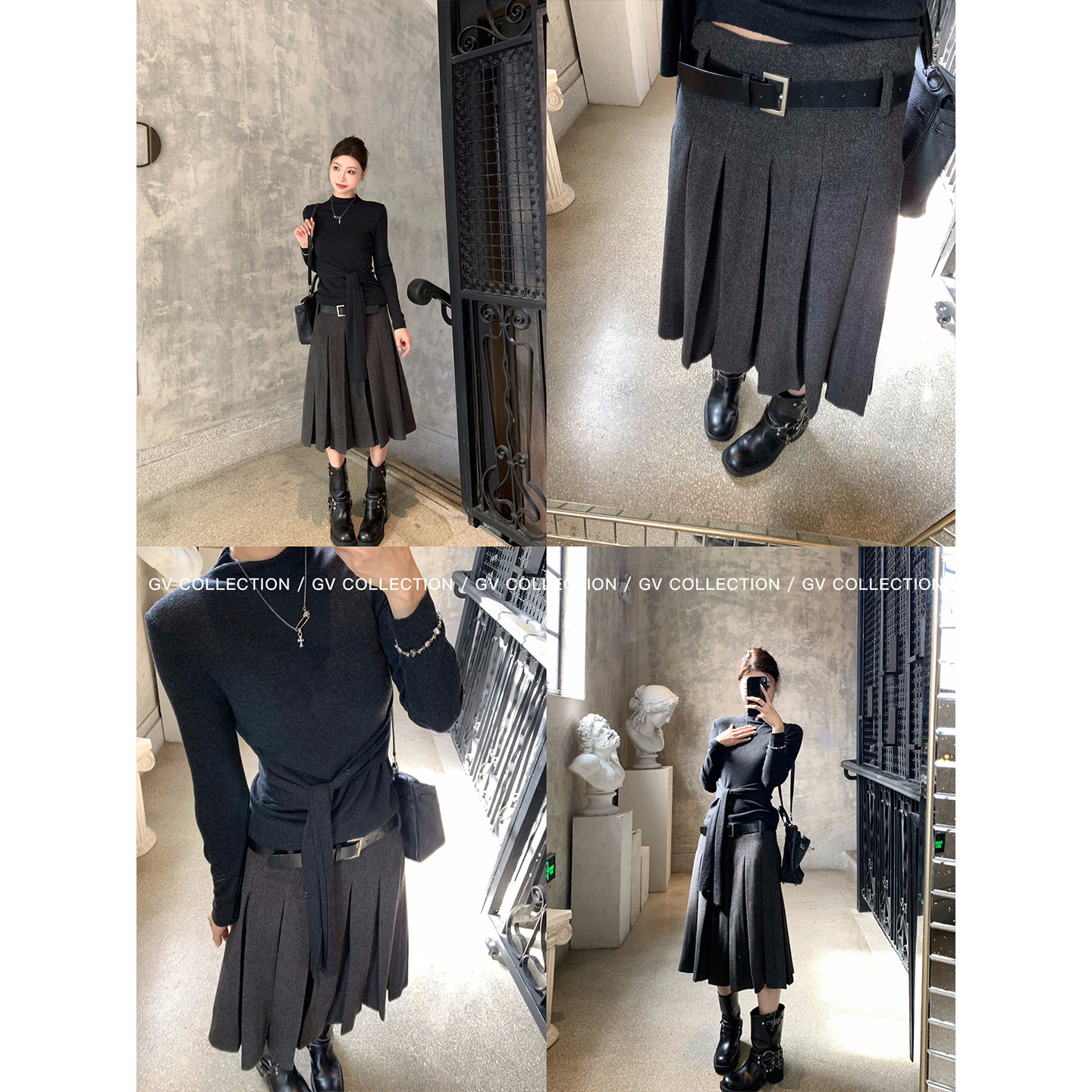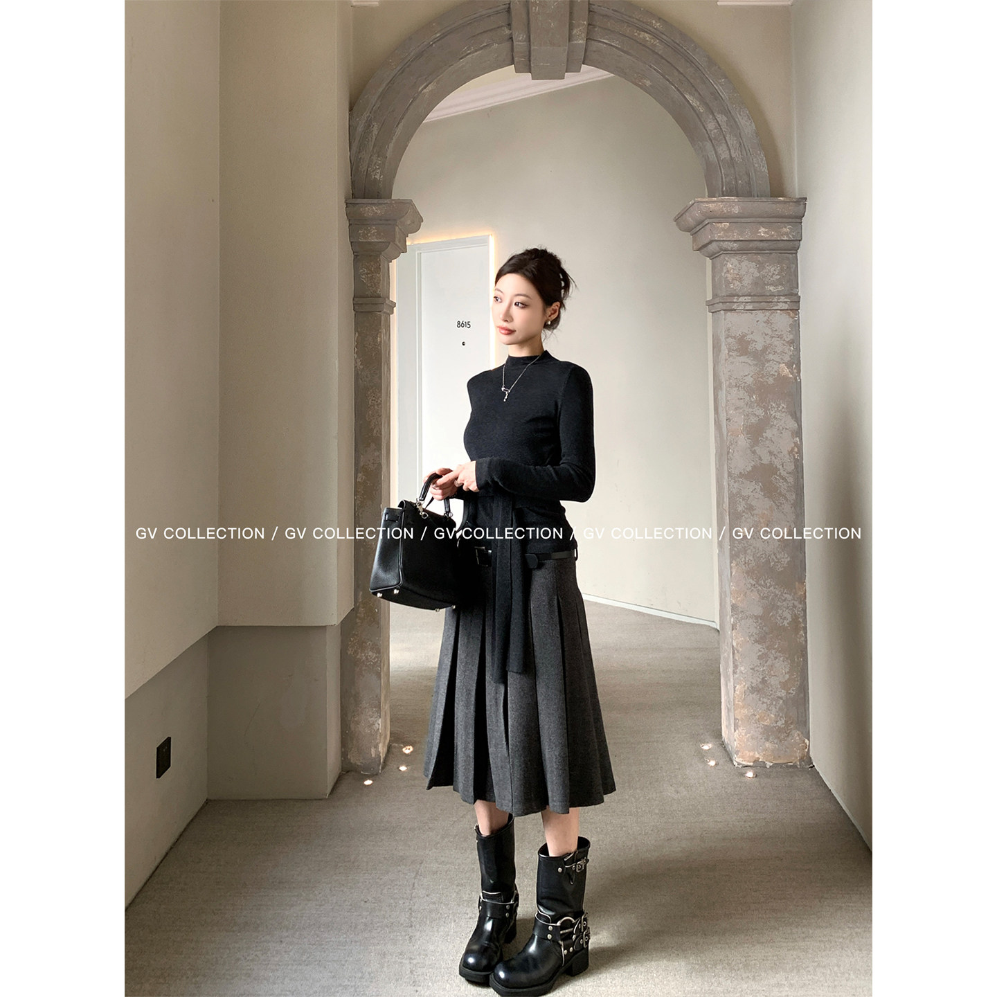 新款 毛呢质感英伦百褶裙冬季 裙子女百搭遮肉 伦敦矜贵 GV大白哥