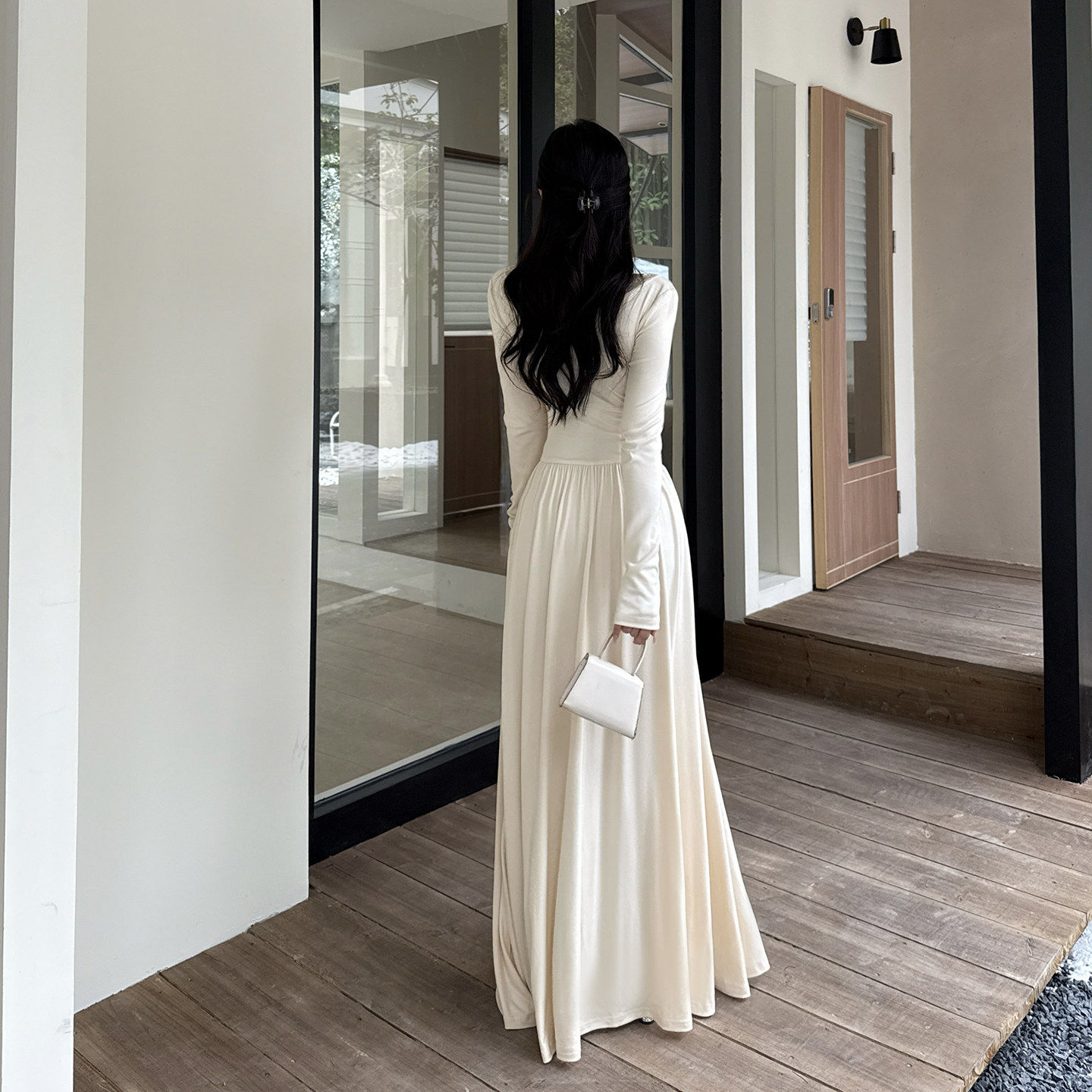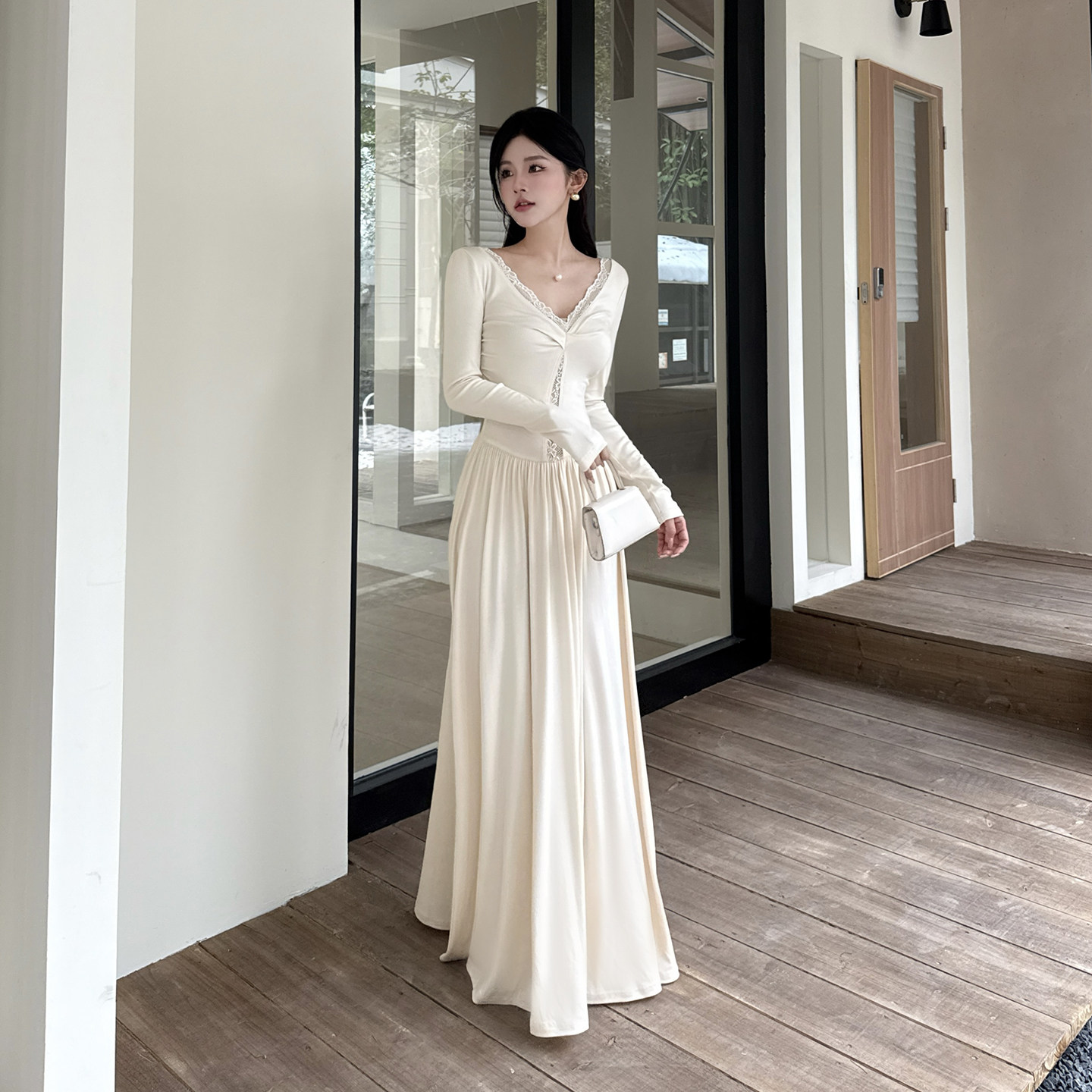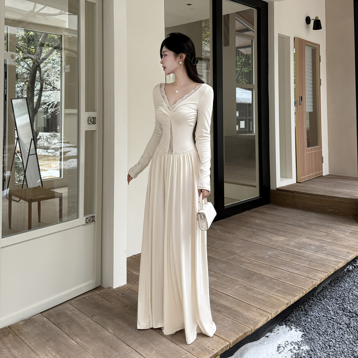 打底长裙 气质修身 GirlsAt18性感V领镂空蕾丝长袖 连衣裙女秋冬法式