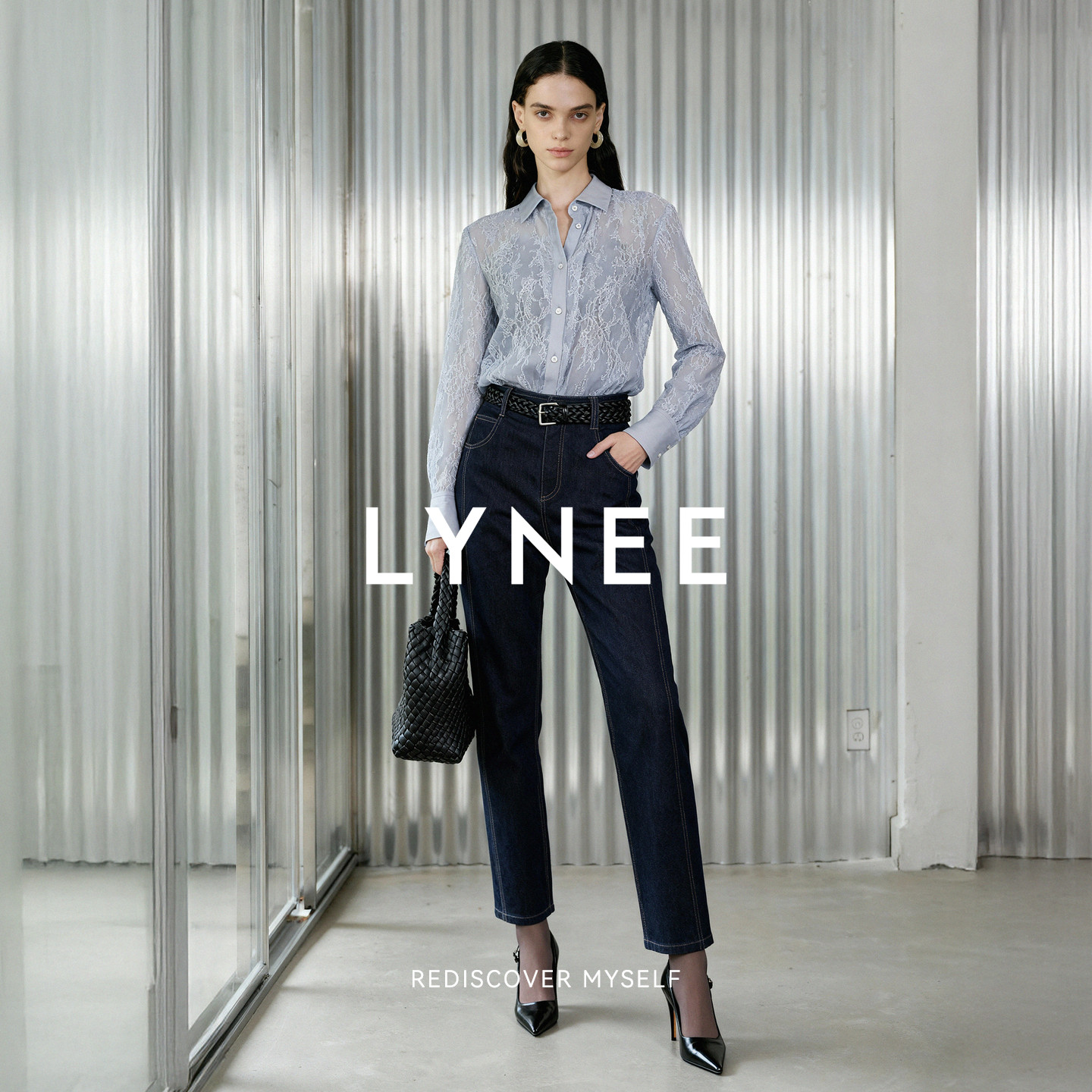 LGD2CAN006 棉混纺深蓝色百搭长裤 LYNEE 高腰牛仔锥裤