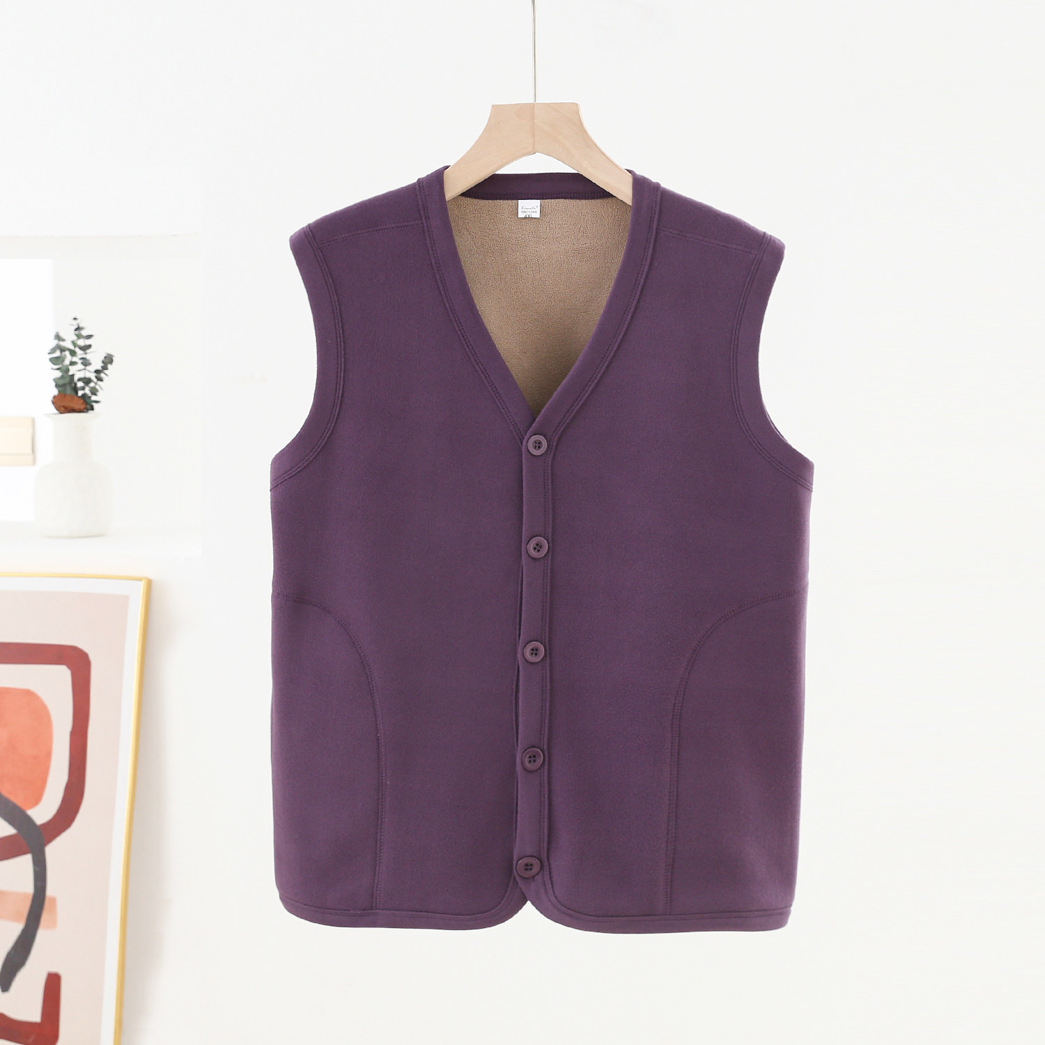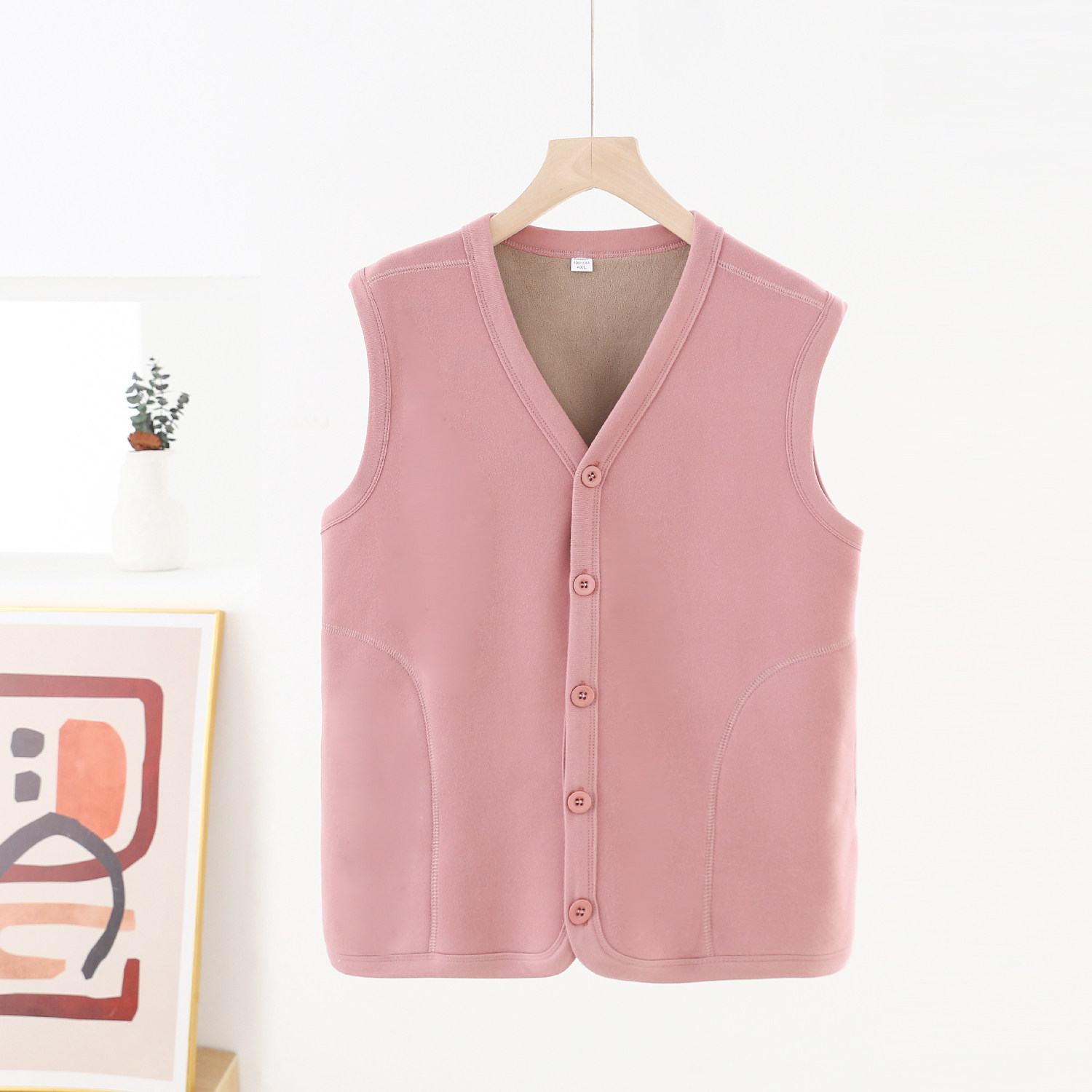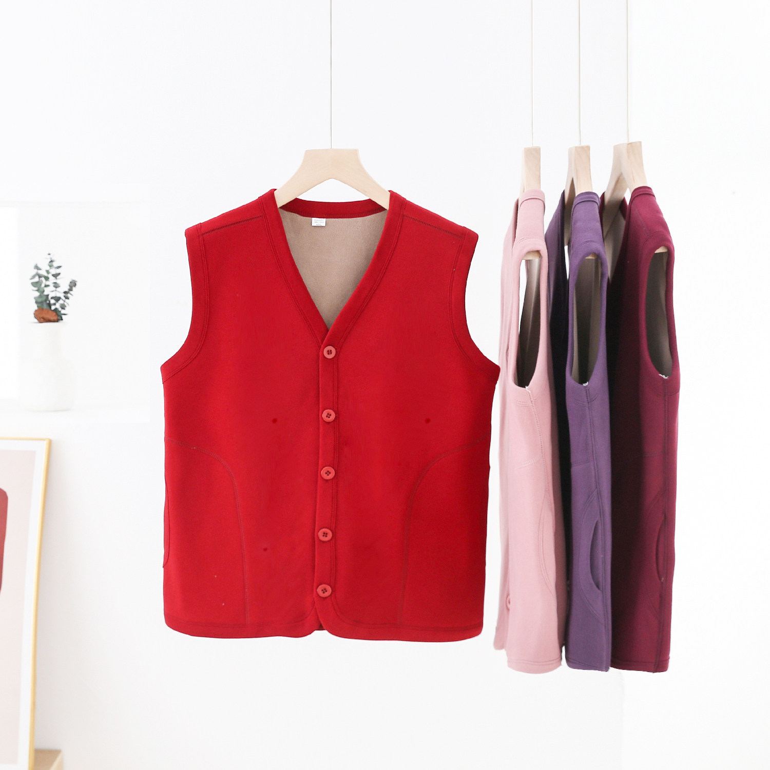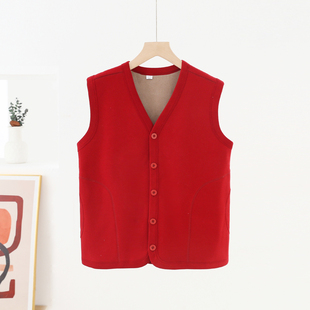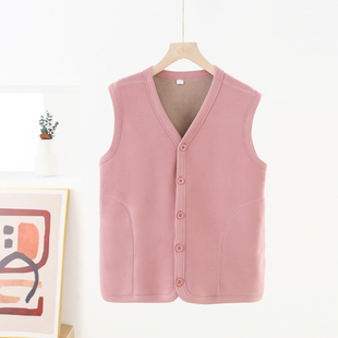 内搭坎肩上衣加绒中老年 保暖背心修身 V领纽扣开衫 德绒马甲女无袖