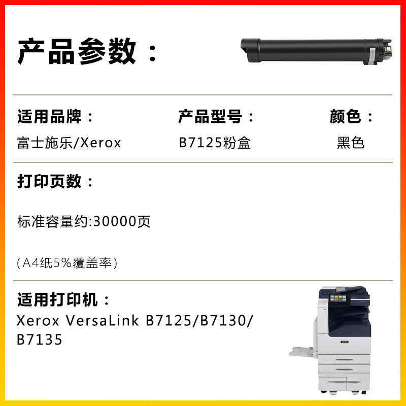 B7135打印机含碳粉 B7130 健赢辰适用施乐B7125粉盒Xerox B7125