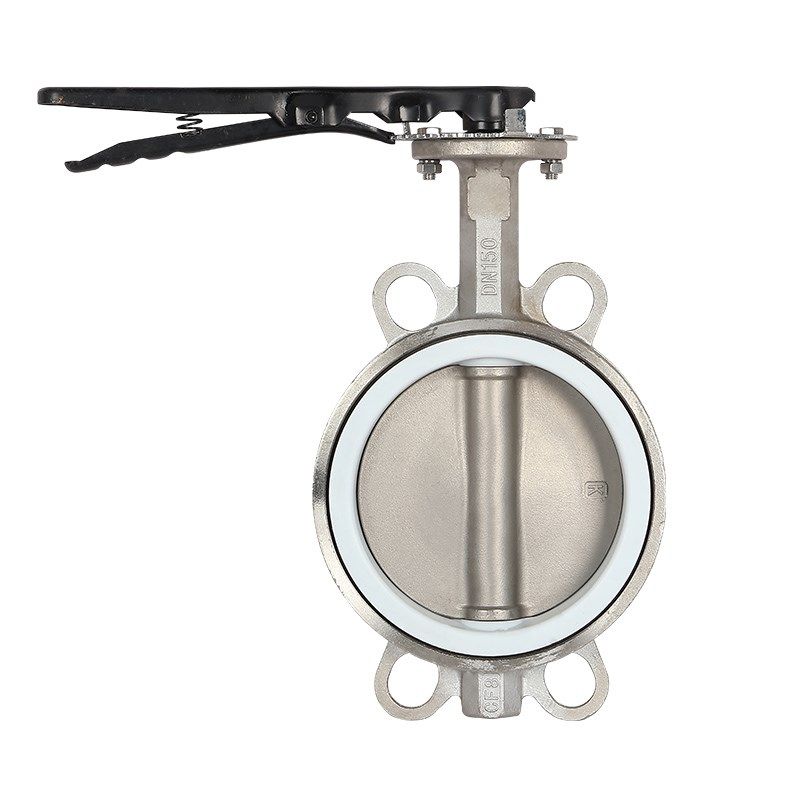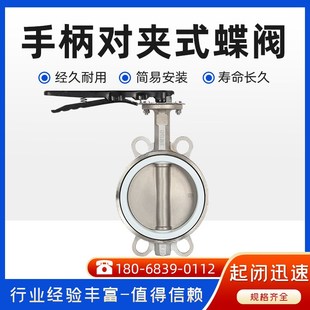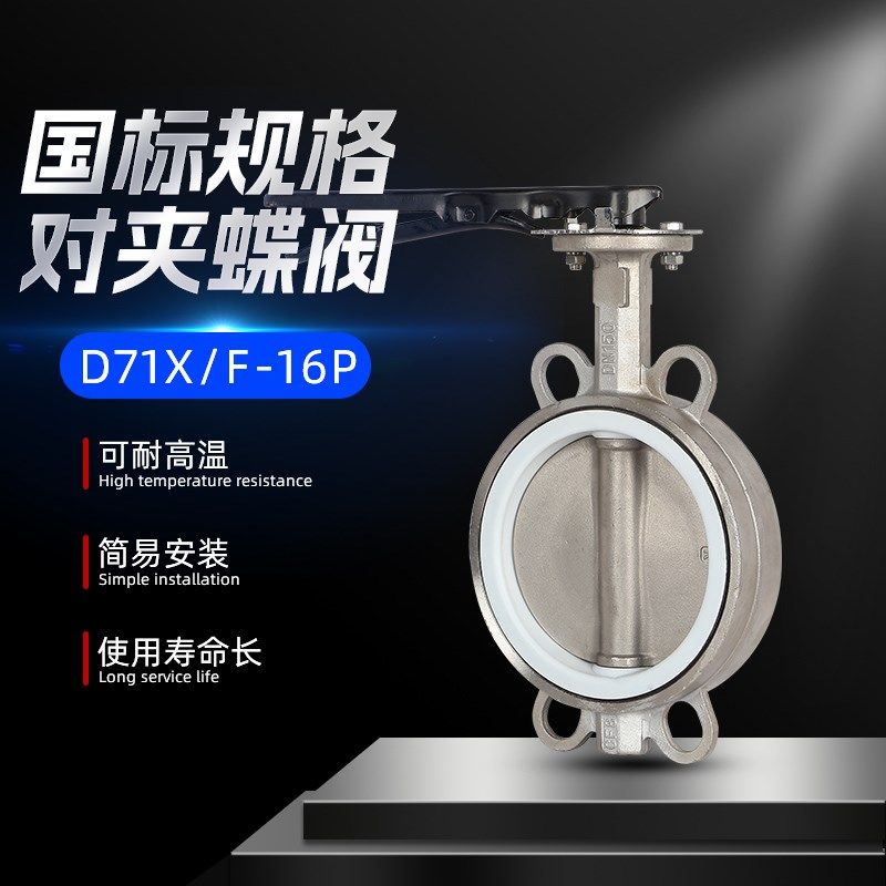 16P四氟耐高温手柄蝶阀dn100 304不锈钢涡轮蝶阀手动对夹式 D71X