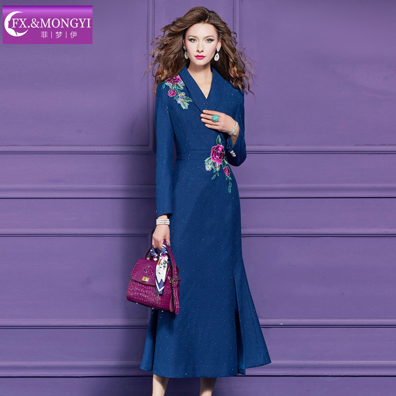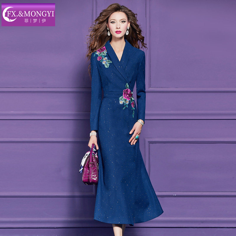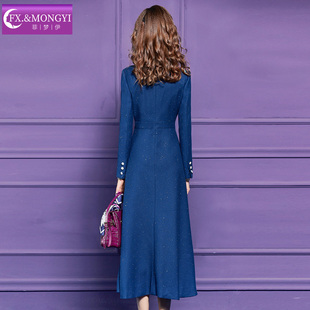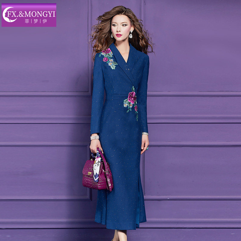 菲梦伊原创烫钻绣花蓝色西装 轻熟高级感气质职业裙子 连衣裙女冬季