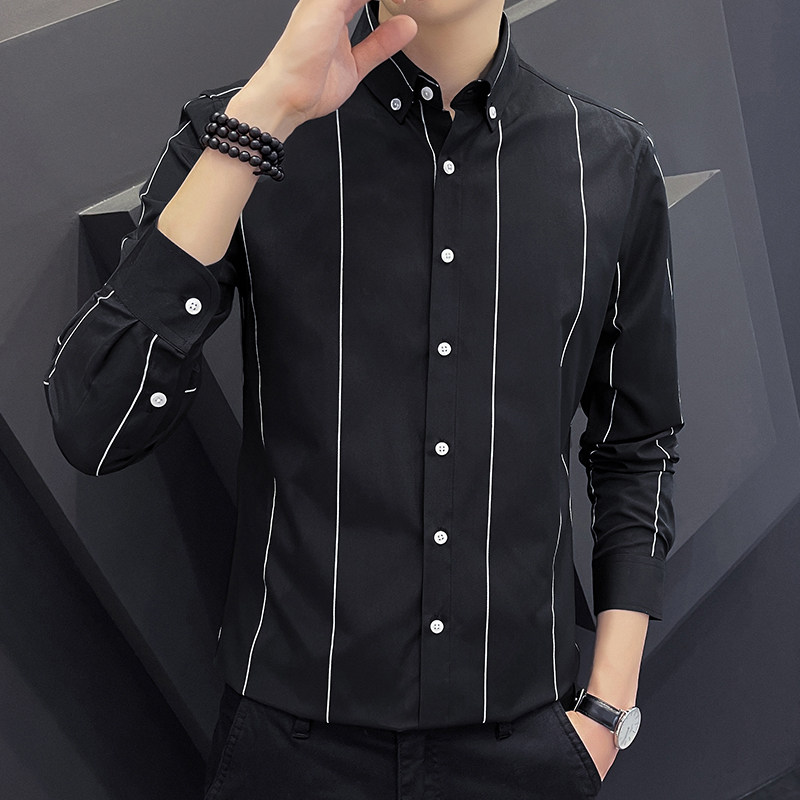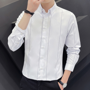春秋款 韩版 潮流修身 新款 衬衣青年帅气百搭寸衫 男长袖 男士 条纹衬衫