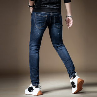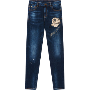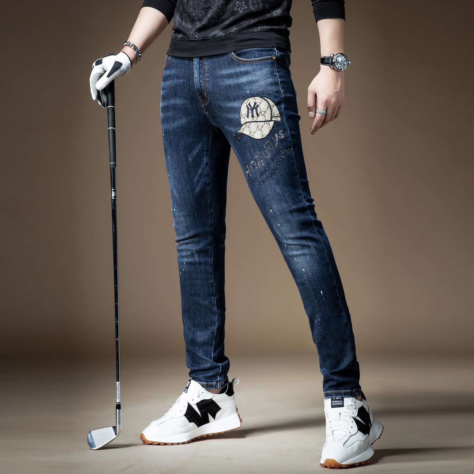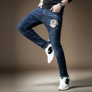 小脚潮流韩版 BM男士 男修身 潮牌运动浅蓝色烫钻牛仔裤 百搭 2020秋季