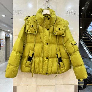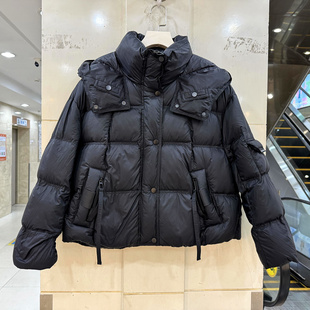 连帽羽绒服冬装 飘带拉链口袋泡芙舒适加厚短装 D8002 艾尔菲洋25A