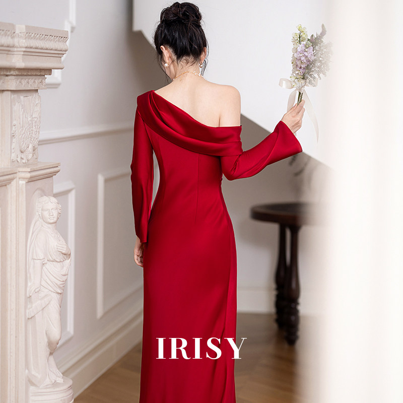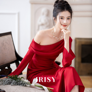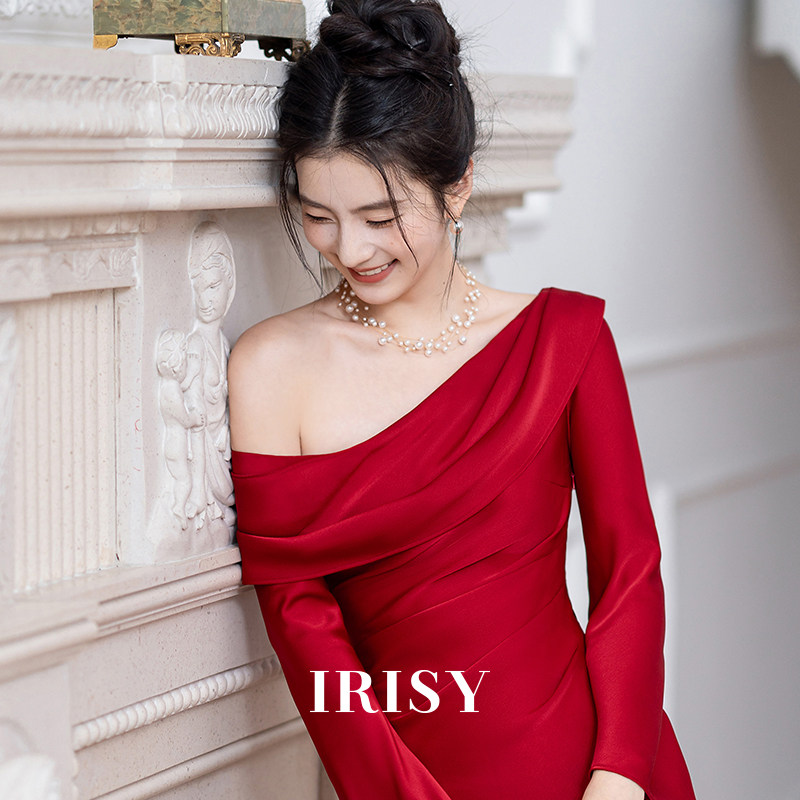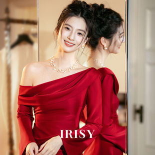 IRISY 斜肩订婚礼服气质新娘敬酒服晨袍连衣裙 「红杉Ⅱ」红色长袖