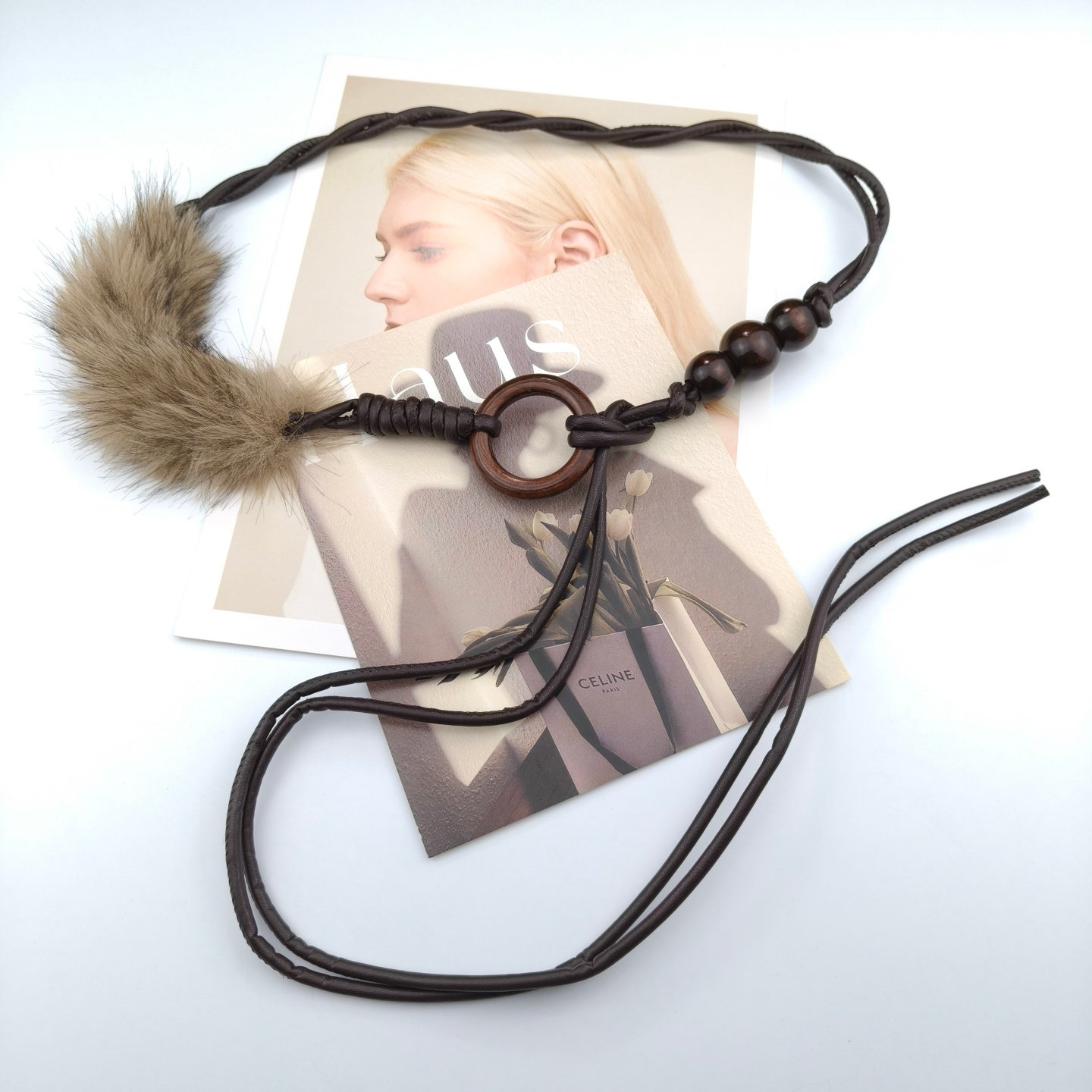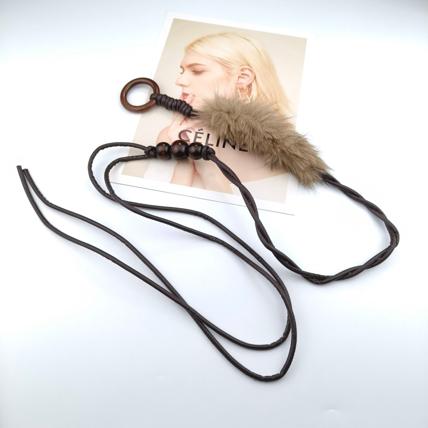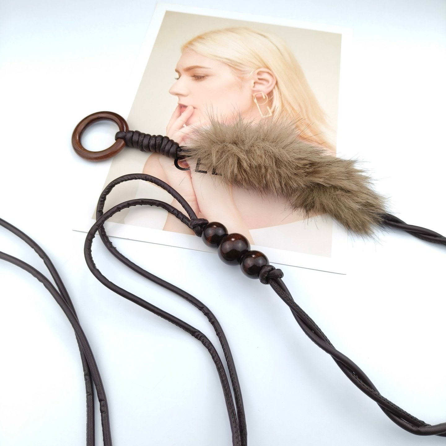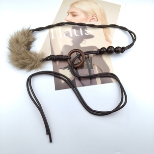 新款 毛毛腰带女配裙子编织皮绳串珠打结腰绳皮带辣妹y2k腰封配饰
