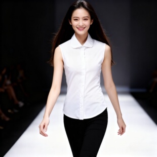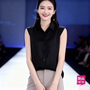 假领装 女POLO领职业通勤打底衫 饰秋冬 衬衫 纯棉轻熟简约风黑色无袖