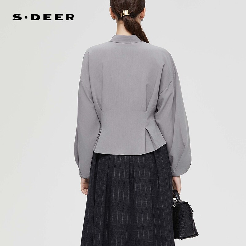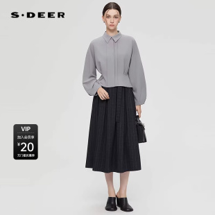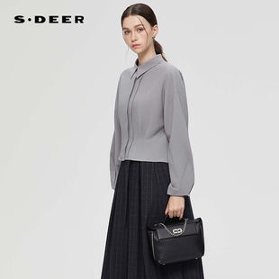 S253Z0541 休闲翻领压褶垂坠雪纺衬衫 sdeer圣迪奥女装 春秋装