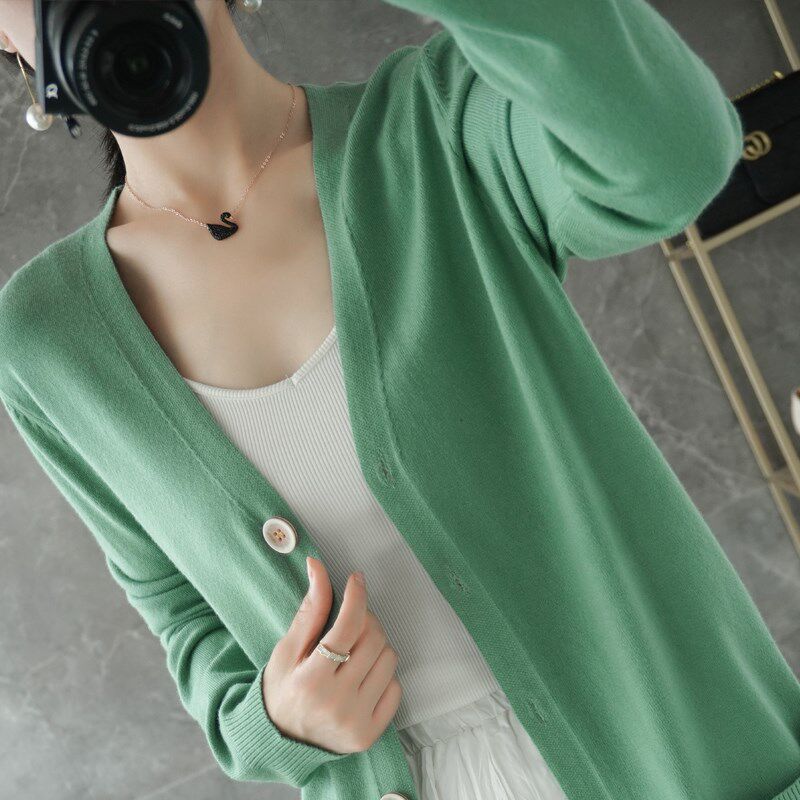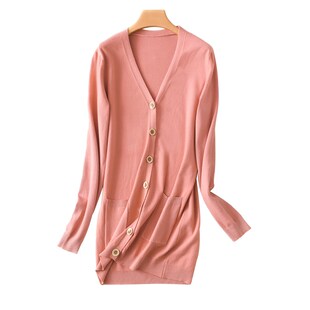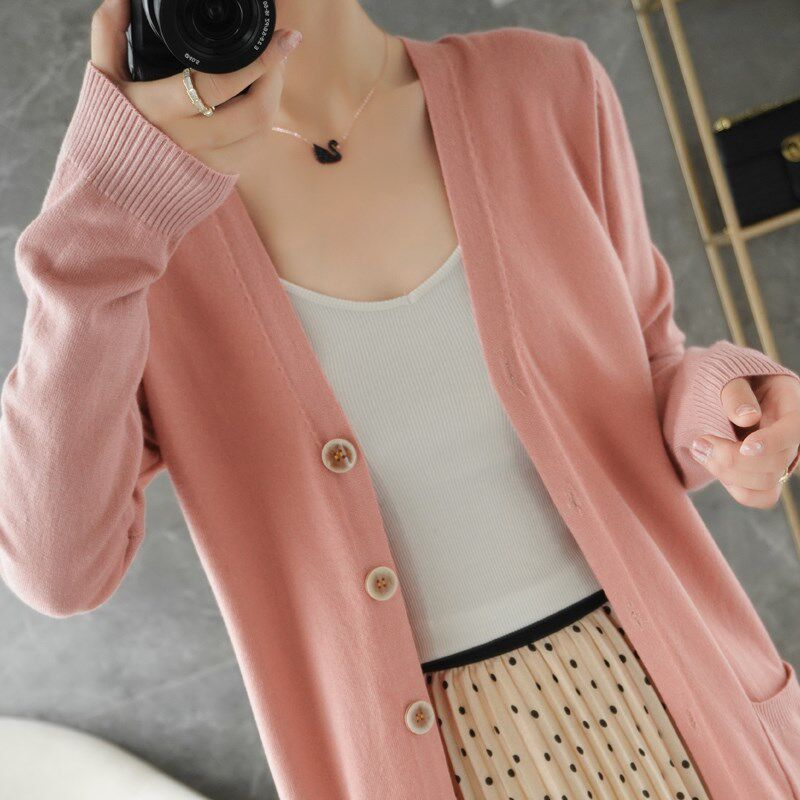 显瘦纯色V领外搭宽松长款 韩版 毛衣外套 女中长款 2020春秋针织开衫