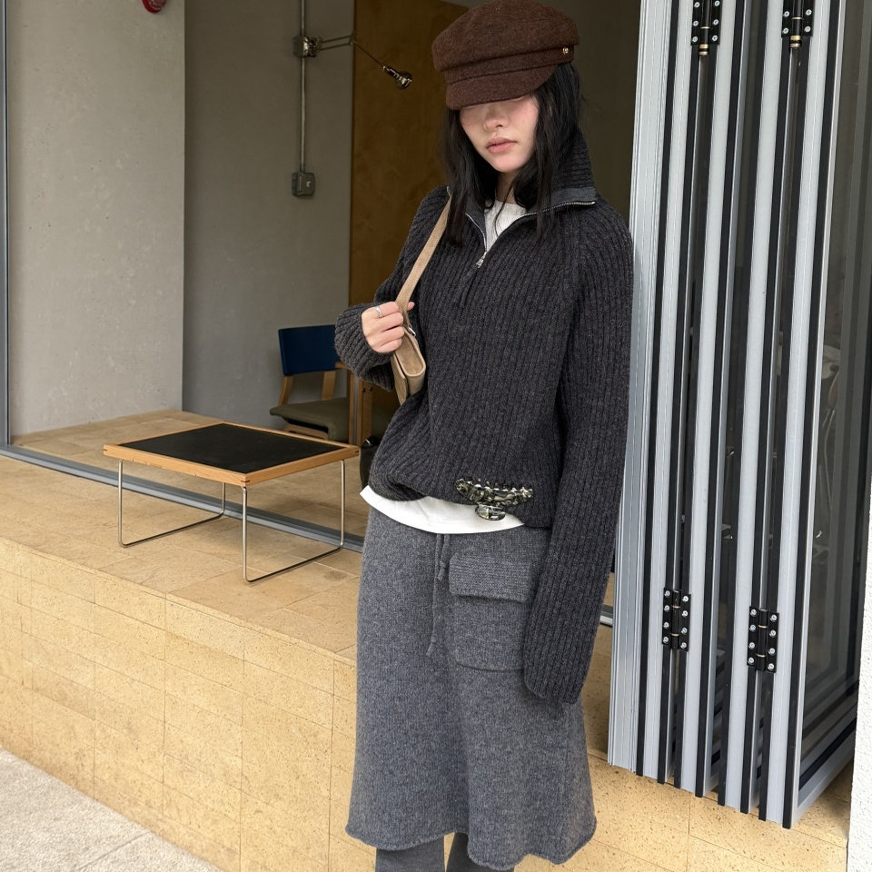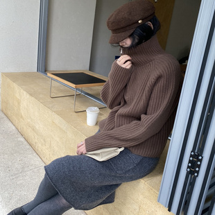 NSS自留极简B入显瘦两穿领1oo羊毛厚密竖纹高领毛衣翻领polo毛衣