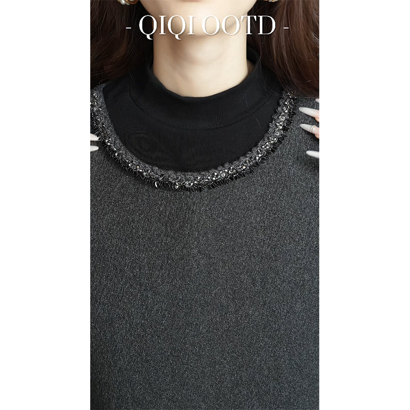 打底衫 钉珠针织长袖 2025秋冬遮肉显瘦内搭上衣T恤 女装 柒院家大码