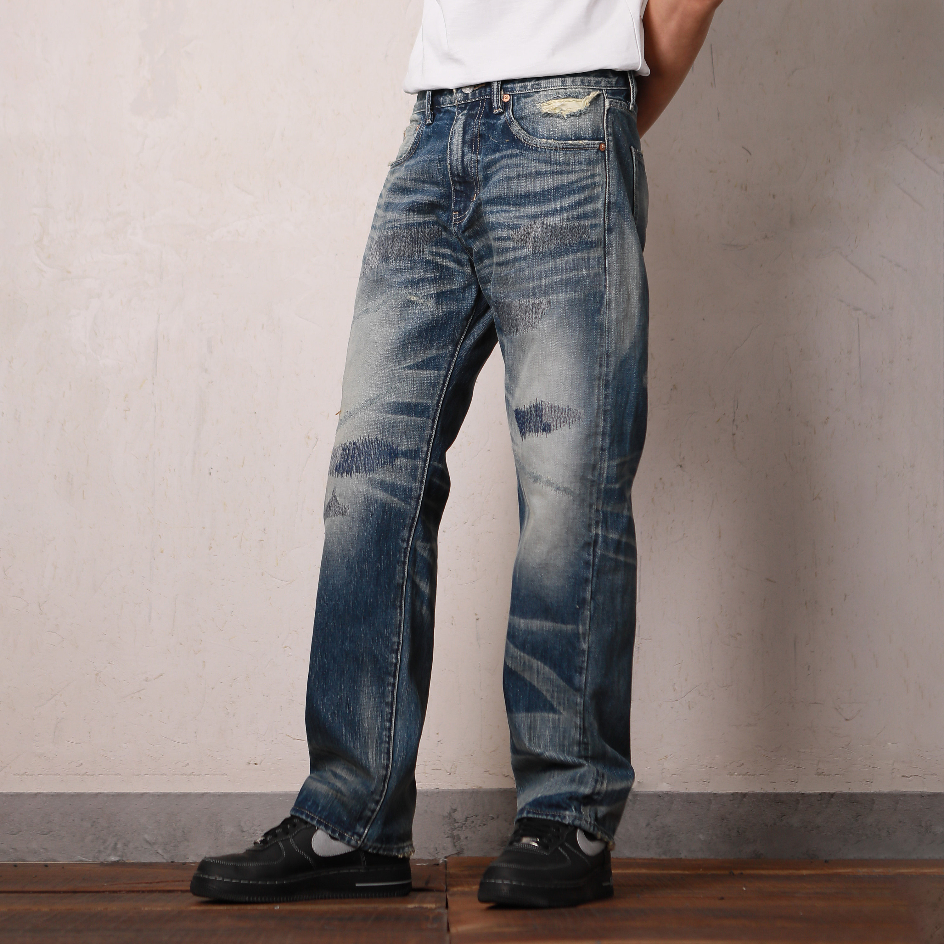 直筒复古牛仔裤 窄幅赤耳白牛loosefit休闲裤 潮 美式 GOODLIVEABLE