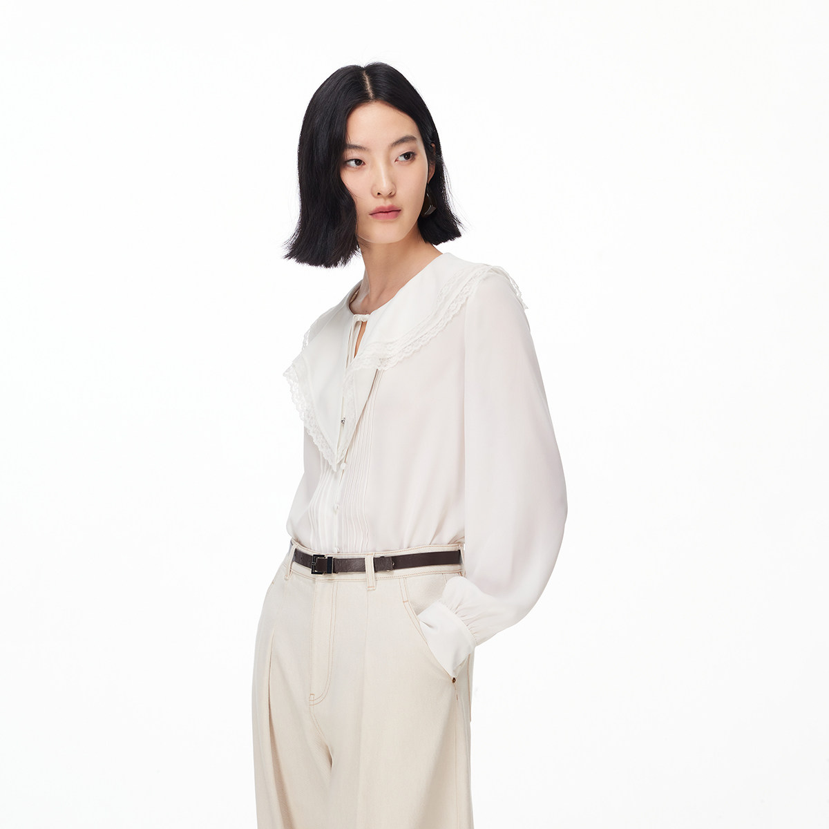 新款 休闲衬衫 韩版 纯色百搭气质洋气长袖 女上衣 短款 100%棉2025春季