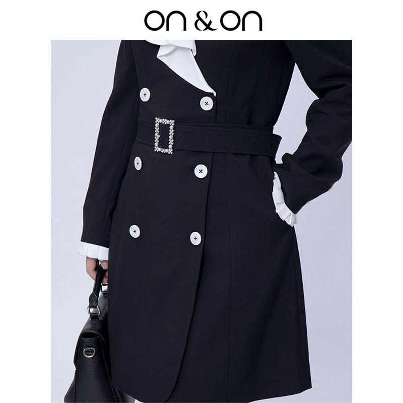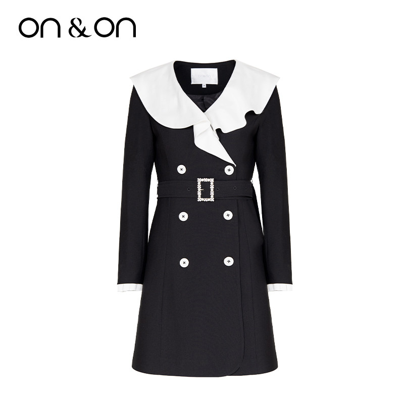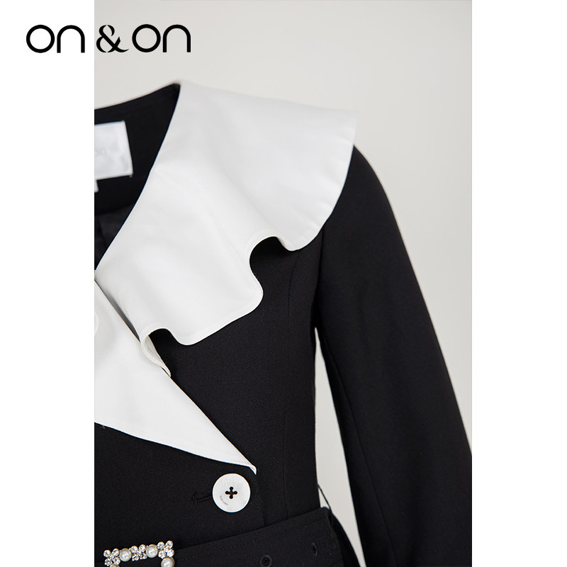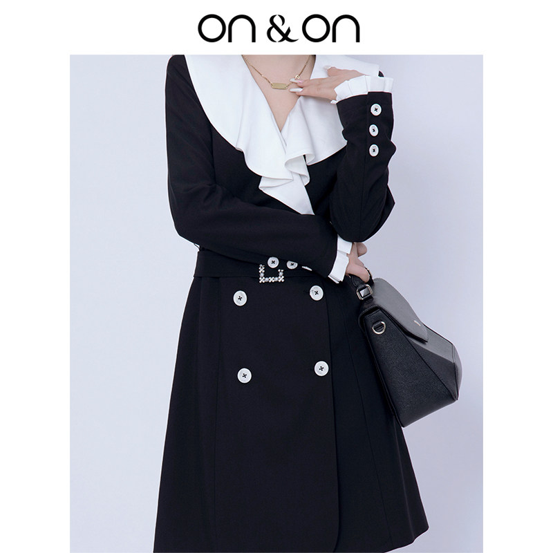 韩系通勤撞色荷叶翻领双排扣西装 闲鱼 连衣裙 安乃安 ON&ON