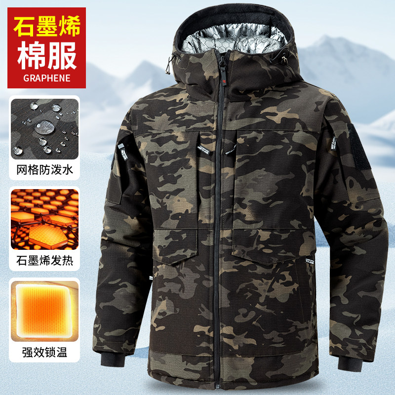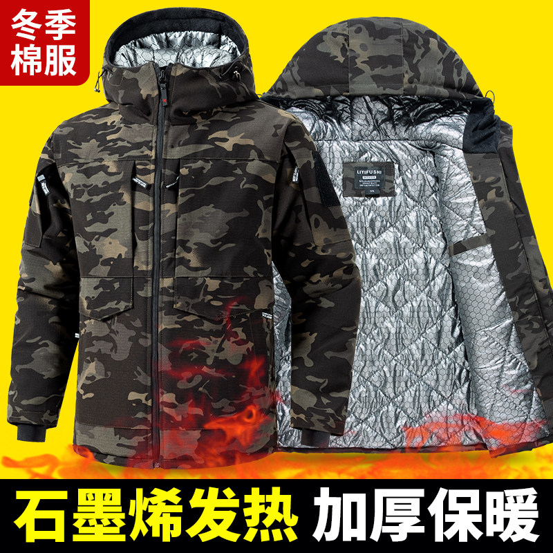 棉服男款 工作服棉衣迷彩大衣加厚石墨烯棉衣大袄劳保棉袄保暖防寒