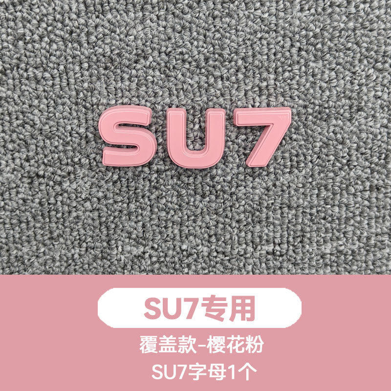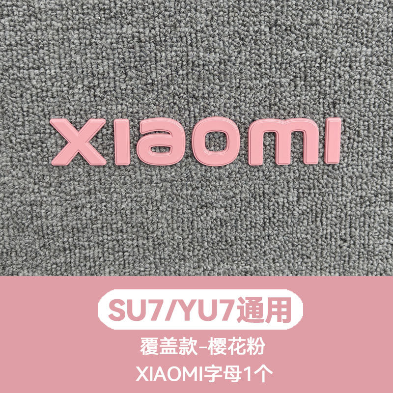 适用小米车标尾贴樱花粉甜菜根紫黑化武士改装 饰yu7苏su7金属配件