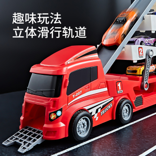 儿童合金收纳货柜工程车变形卡车轨道弹射汽车男孩1 3岁益智玩具