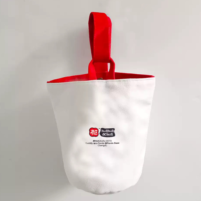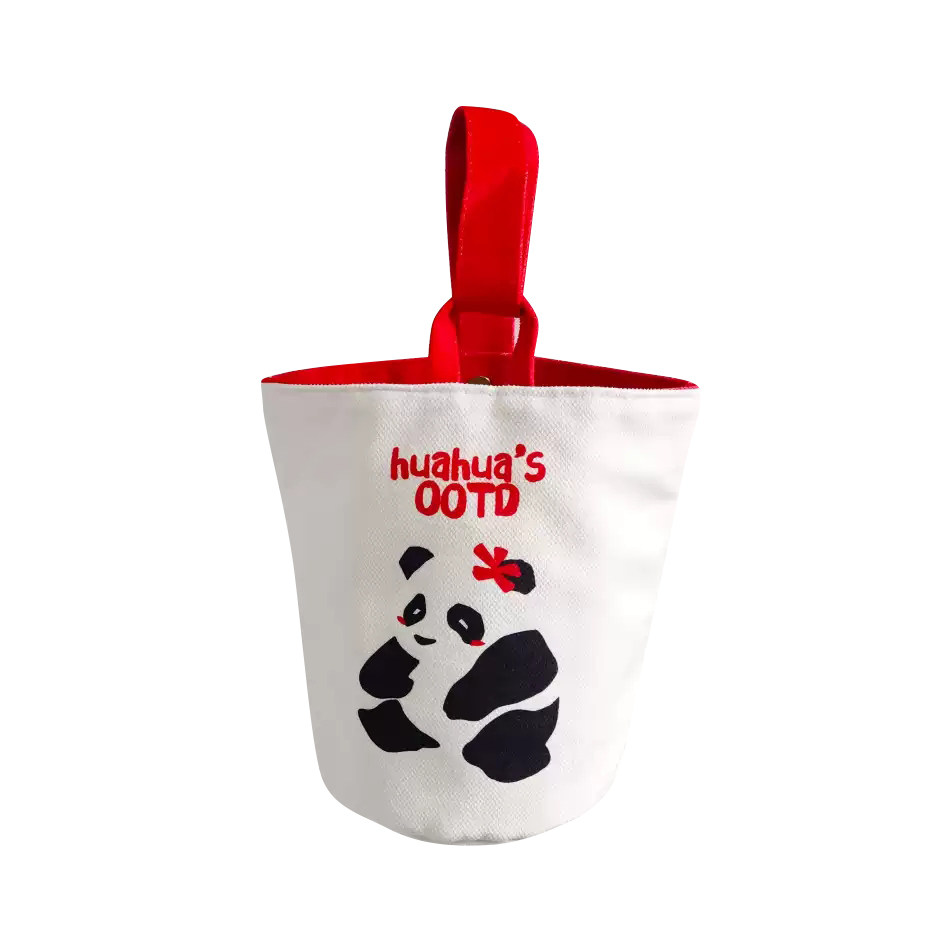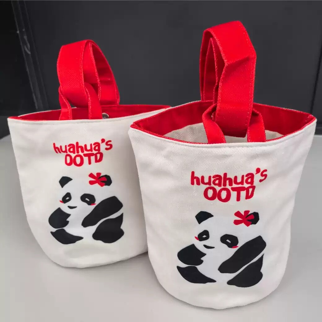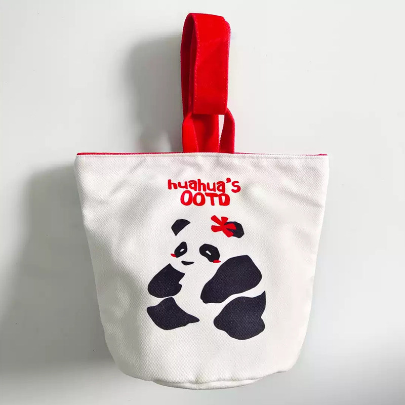 帆布水桶包熊猫钱袋子绒布手拎圆桶包帆布包定制化妆便携包可定制
