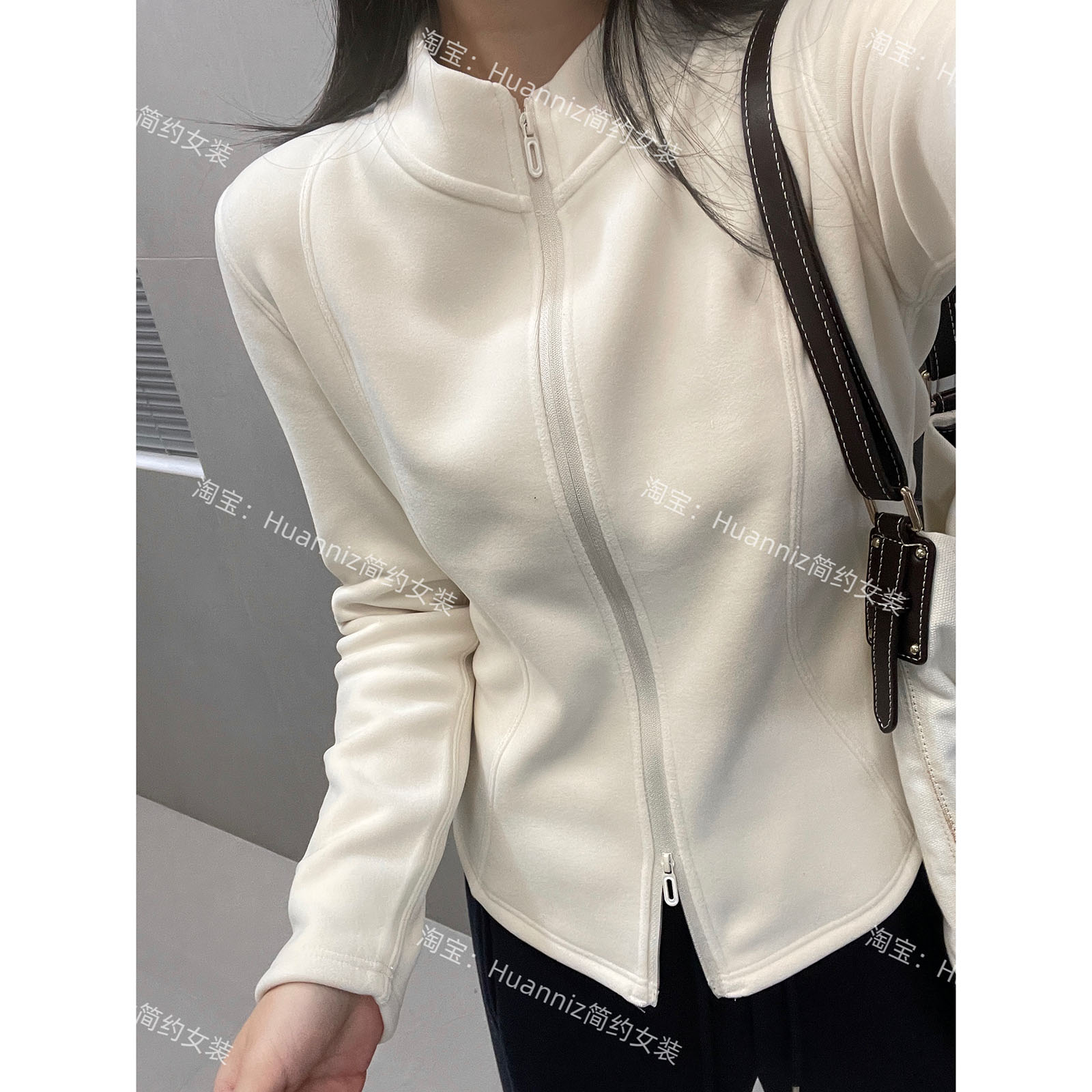 显瘦小蛮腰德绒加厚立领修身 女士内搭 卫衣外套暖肤加绒双拉链开衫