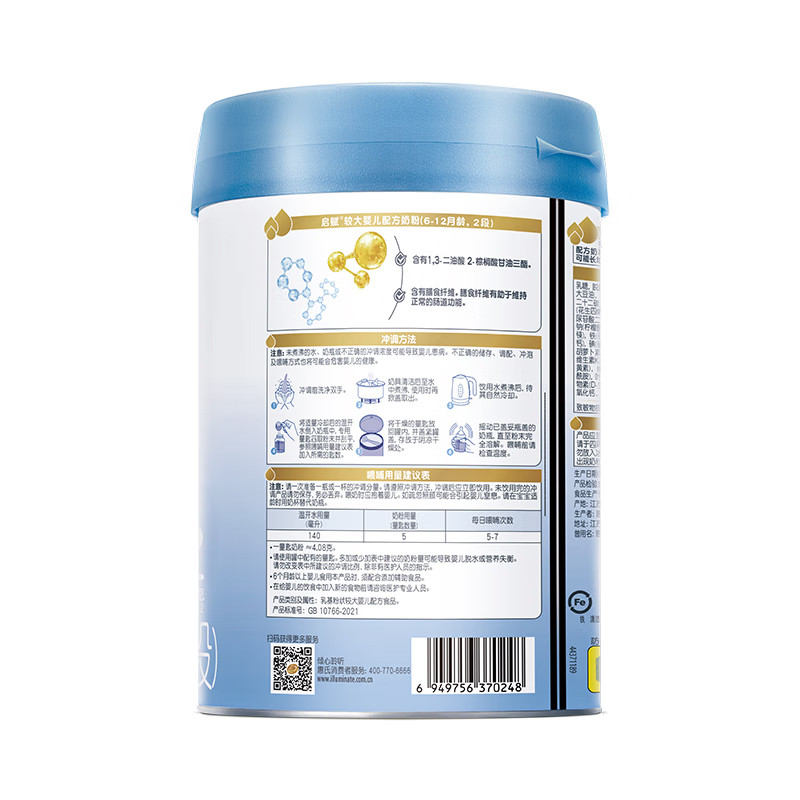 惠氏启赋蓝钻2段850g 黄金OPO婴幼儿奶粉二段奶粉官方旗舰 6罐HMO