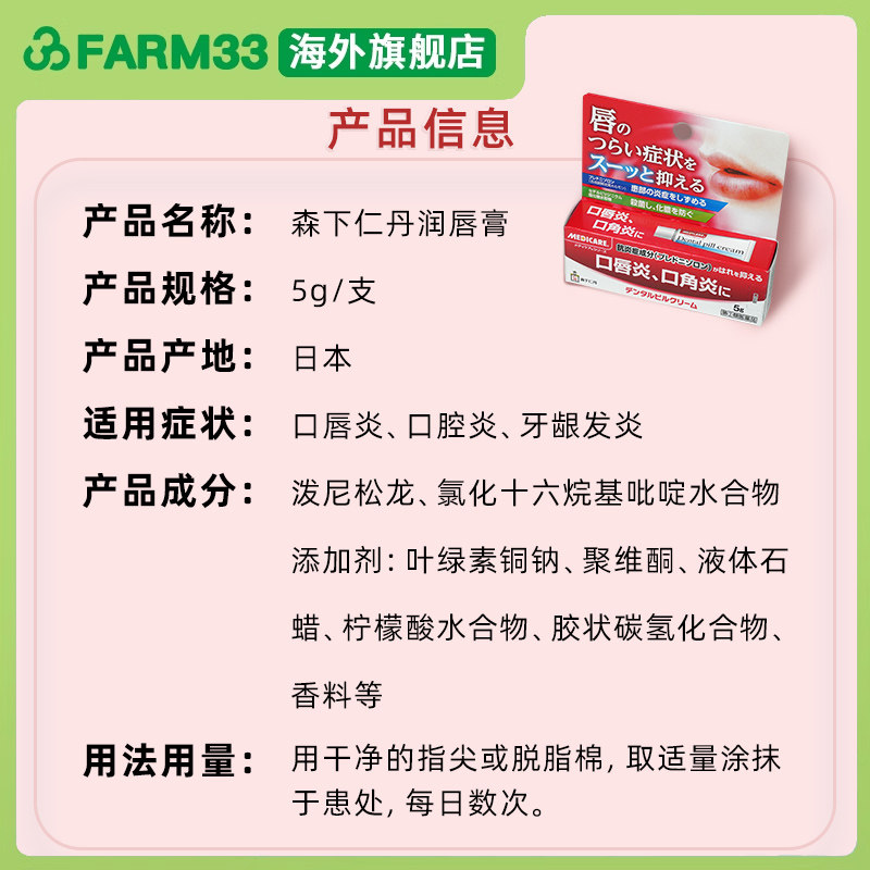 日本进口森下仁丹口唇炎缓解炎症舒缓不适润唇膏5g